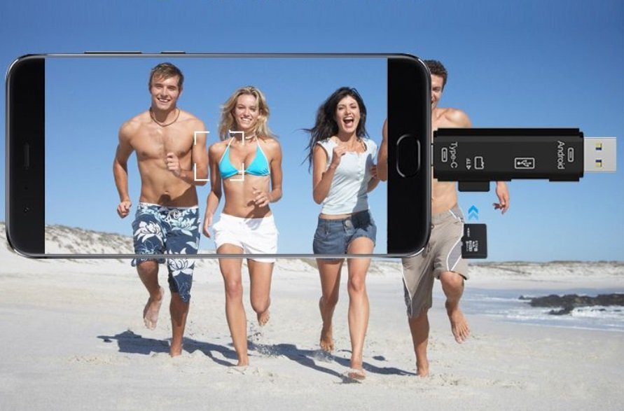 | USBマルチカードリーダー USB2.0 microUSB TypeC対応 伸縮変形タイプ ホワイト |