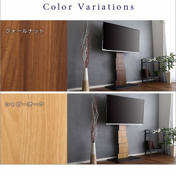 | 【ポイント】 まるで現代アート作品のようなデザインテレビスタンド! お部屋にアクセントが欲しい方にはピッタリです。 高さ調整が可能で、240度のワイド機能が付いています。 シャビーオークとウォールナット色の2カラーをご用意しております。 |