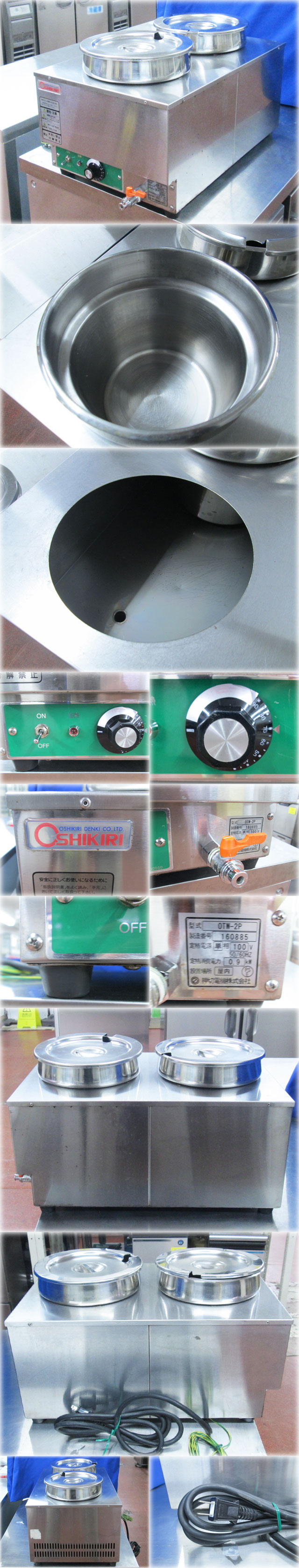 押切電機 卓上電気ウォーマー OTW-2P を出品いたします。 ■特徴■ 食べごろ温度でスタンバイ。 いつでもできたての味。 湯煎式ですから 煮詰まったり焦げつきの心配がありません。 食べ頃の温度でスタンバイ いつも出来立ての味を提供できます。 ■仕様■