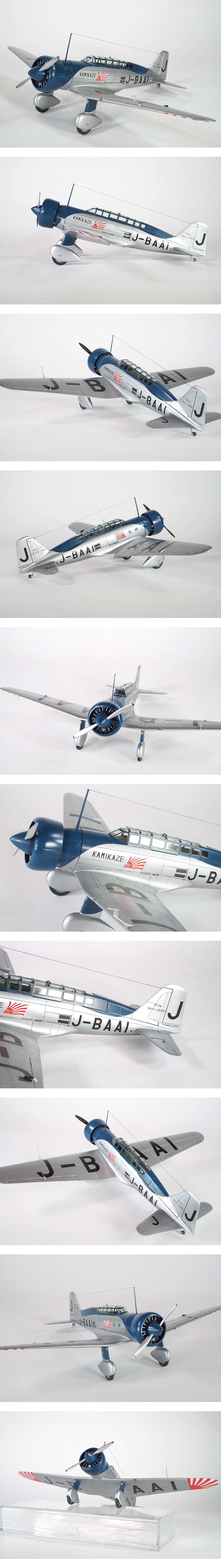 ファインモールドの「神風号」1/48です。追加変更点は①ファインモールドのシートベルト②アンテナ線です。エアブラシ塗装(一部筆塗)、銀塗装のため墨入れの前にクリア塗装、墨入れ、デカール貼り付けのあと再度クリアーを吹いています。梱包サイズは80です。