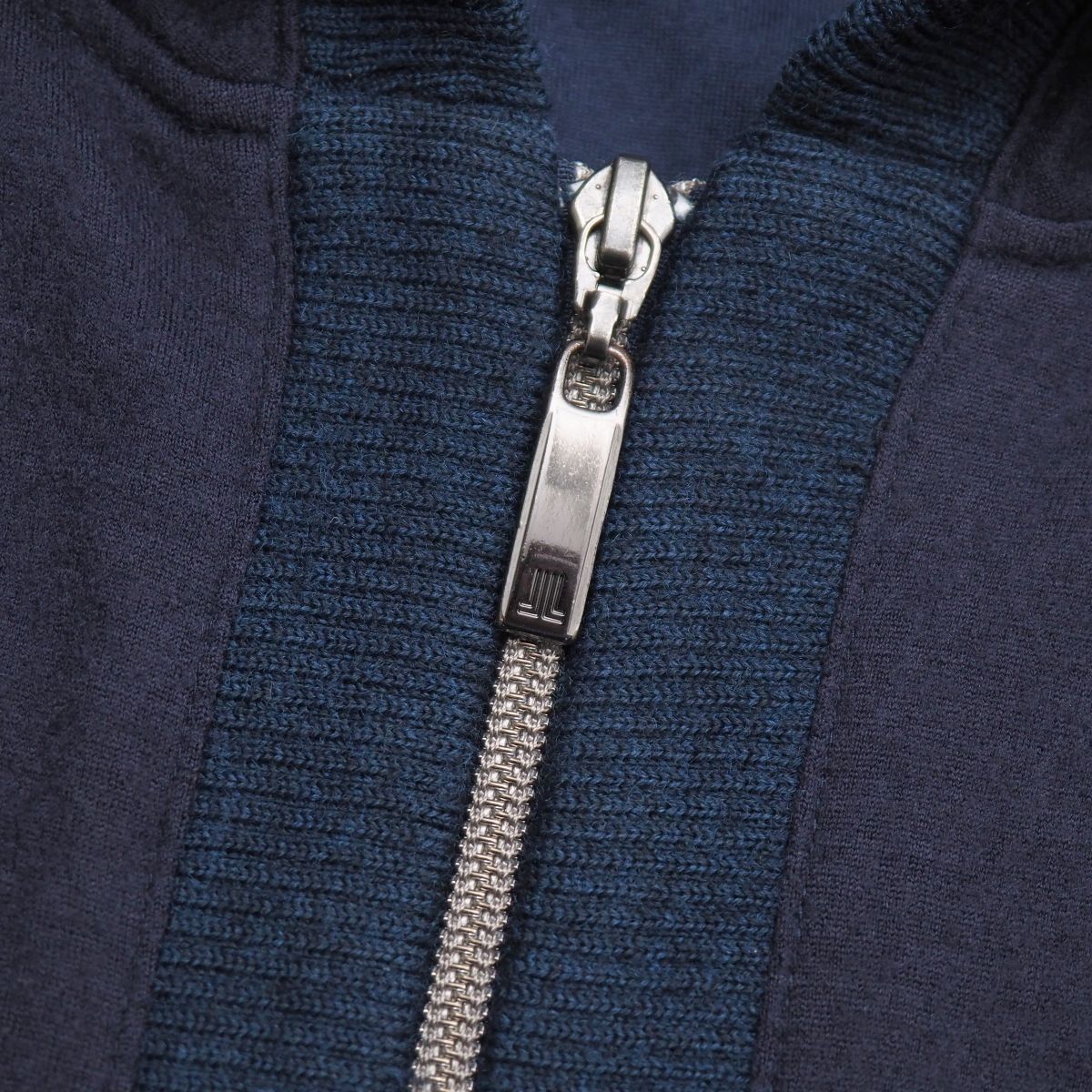 ダブルジップ仕様、快適な着心地、落ち着いたトーンのネイビーが特徴的な一品。