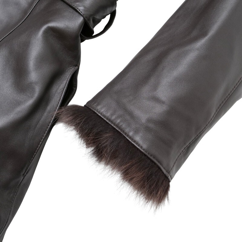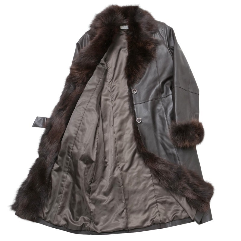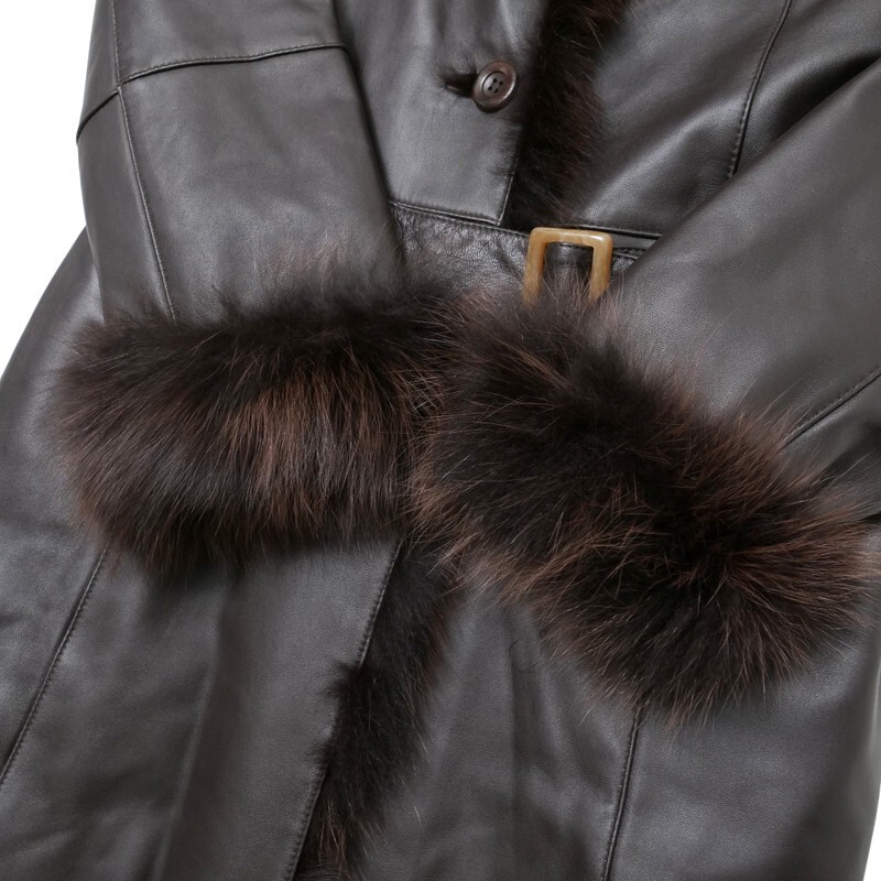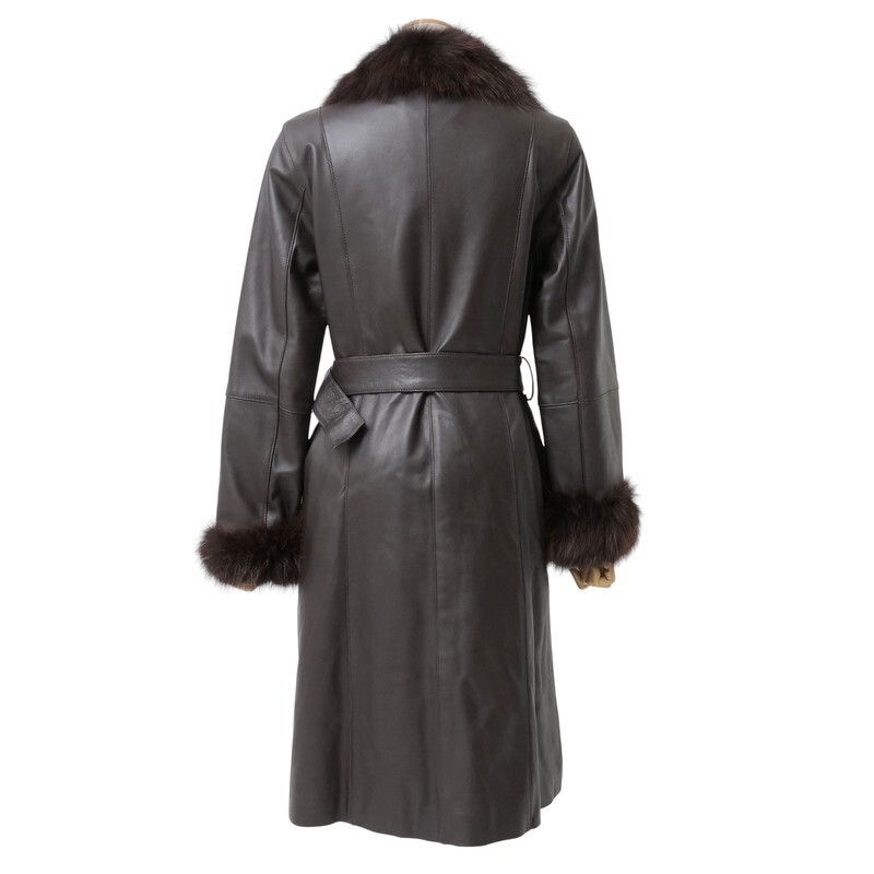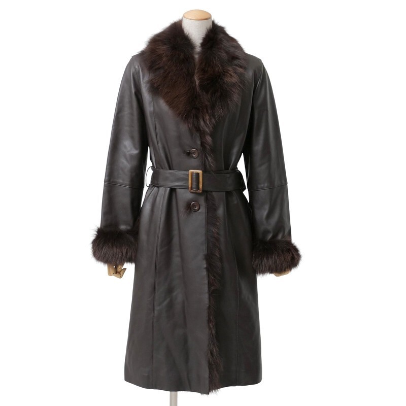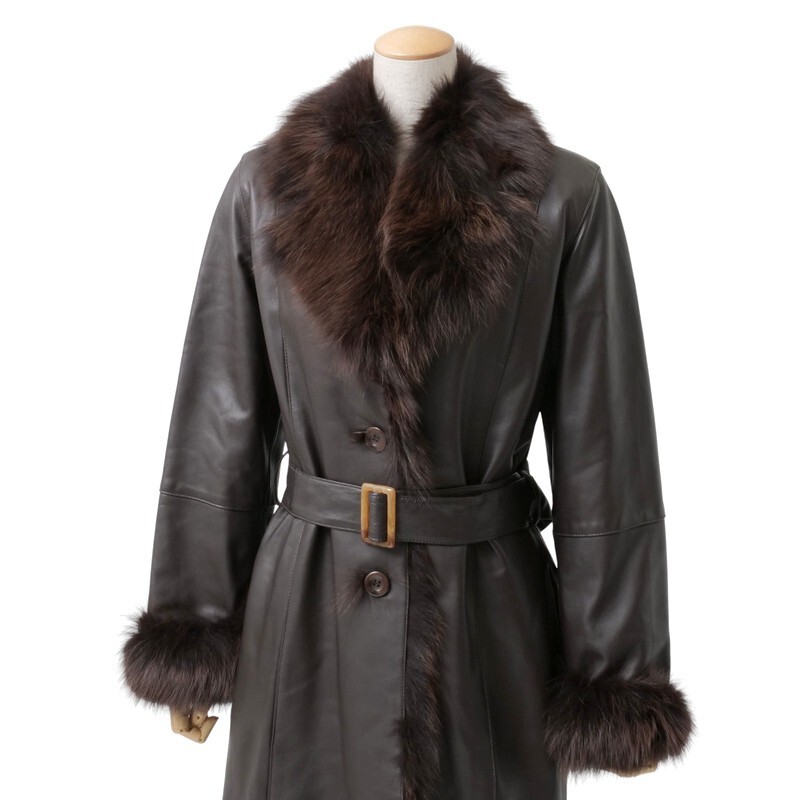 | MI2188□ジェイホワイト/J-white yukayo 羊革 本革 フォックスファー ベルト着脱可 レザーコート ロングコート レディース サイズ9 茶系 | |||