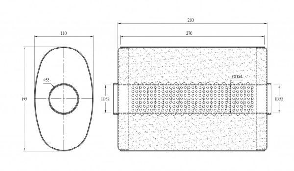 | 汎用オーバル サイレンサー110mm×195mm×280mm(タイコ) 50.8Φ用 |