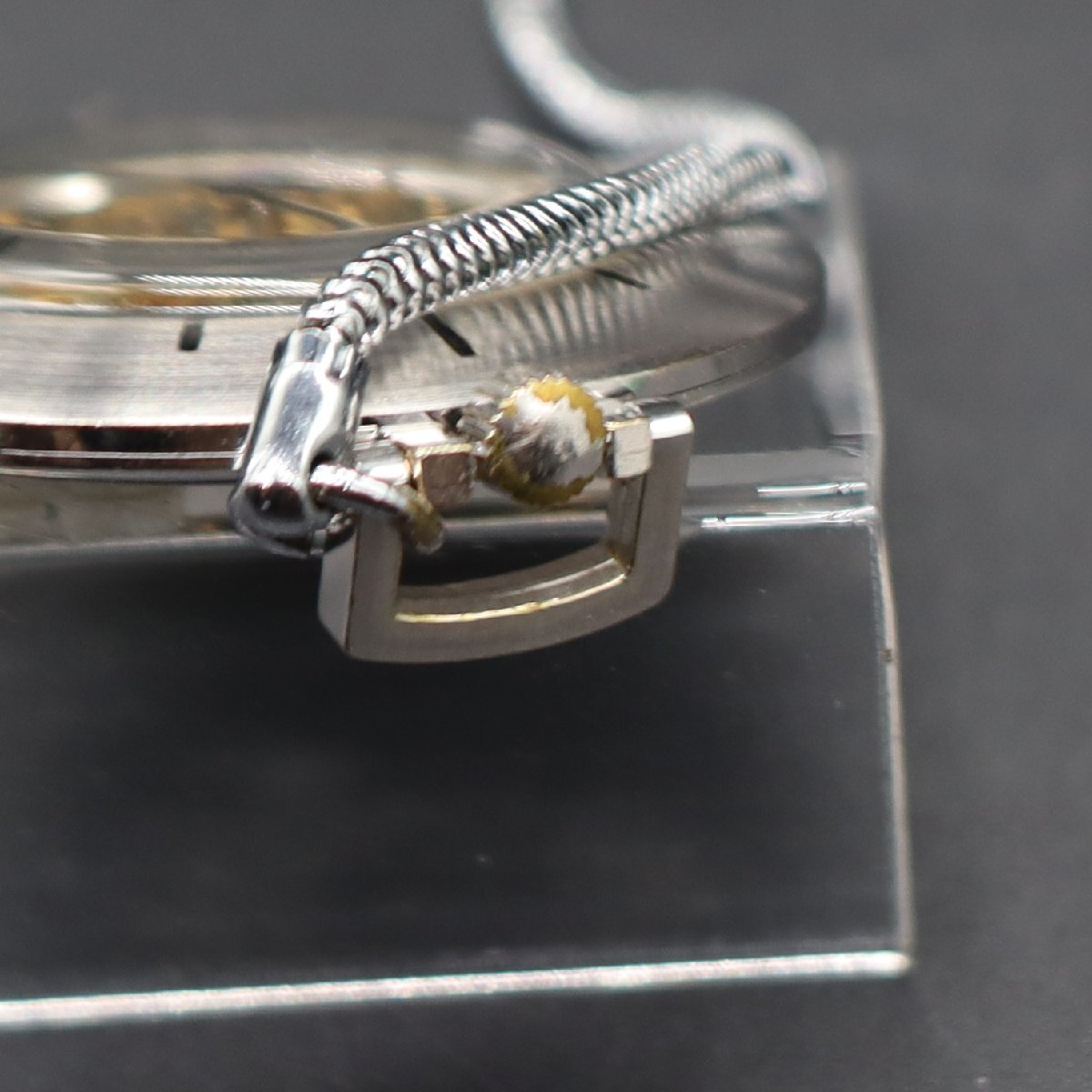 平置きで12時間動作確認済み、大幅な遅れなく稼働中です。 リューズ巻止まりOK、一段引きで時間調整可能です。 インジケーターの動作確認済みです。 ※アンティーク時計を長くお使いいただくため、 丁寧に、やさしく操作していただくようお願いいたします。 アンティークですので全体に経年のキズ、打痕、 両面風防に小キズや薄い線キズございますが、 視認性は問題なく、内部の機械しっかり確認できます。 針、目立つ傷みなくきれいな状態です。 付属のチェーンは約38cm(留め具別)は傷み少なく良好です。 外箱・内箱ともに小傷みございます。 個人情報保護法のため、画像の一部ぼかしておりますが、 内箱のふた裏に、記念贈呈の記載がございます。 他、取扱説明書がございます。 アンティークですので、詳しくは画像にてご判断願います。 |
