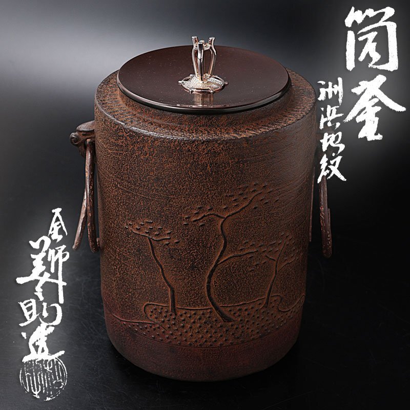 | 【古美味】釜師 十二代和田美之助造 筒釜 洲浜地紋 茶道具 保証品 |