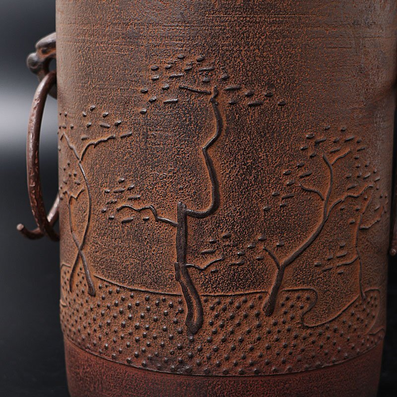 堂々とした佇まいの造形と、和を感じさせてくれる洲浜の静けさがうまく共存しており、茶室に優雅さを与えてくれる筒釜です。 ★商品は十二代和田美之助の作品である事を保証致します。 |