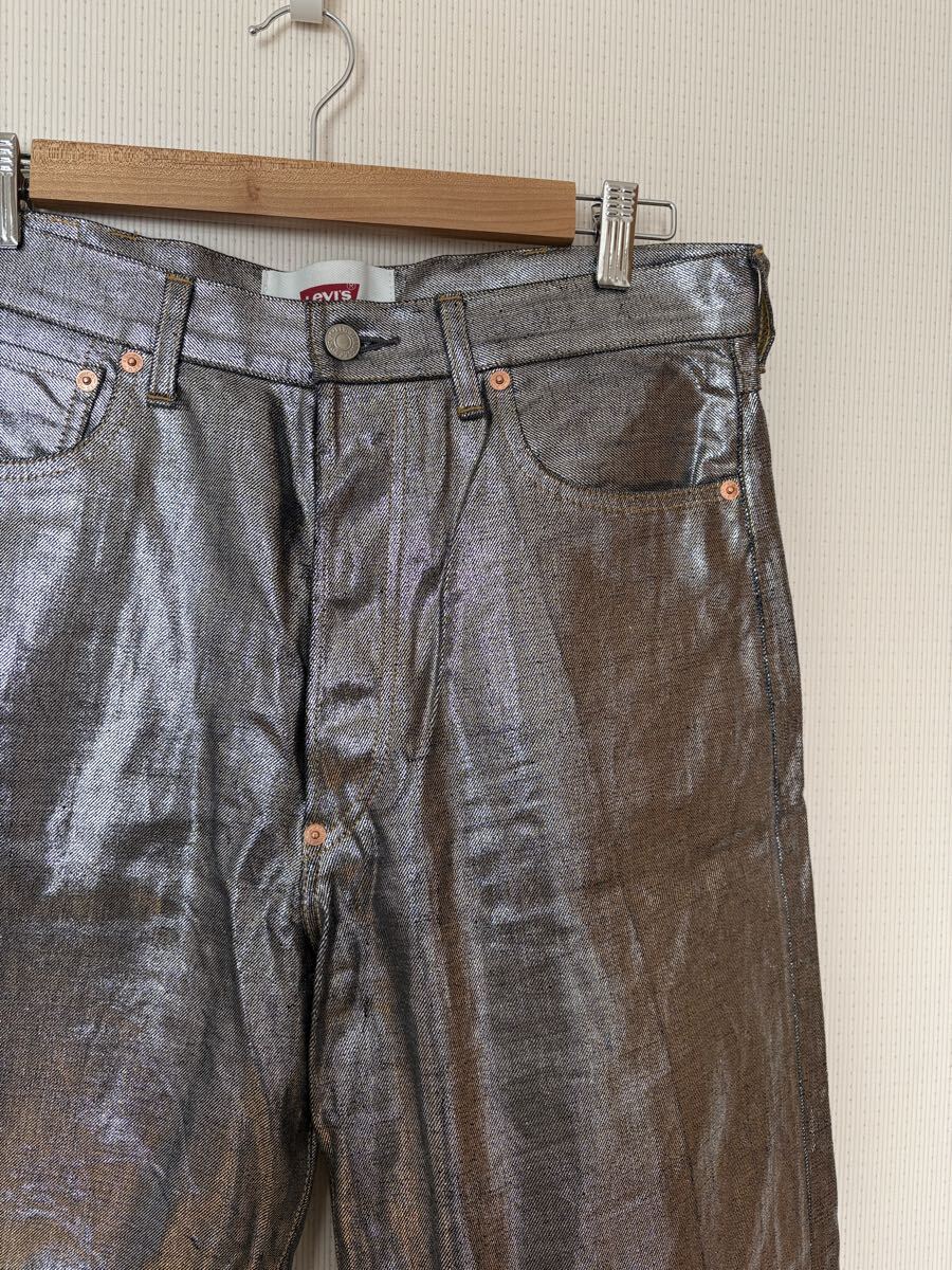 1回着美品◆JUNYA WATANABE Levis Wネーム インディゴ denimパンツ◆リーバイス ジーンズ デニム ジーパン◆シルバーメタリック