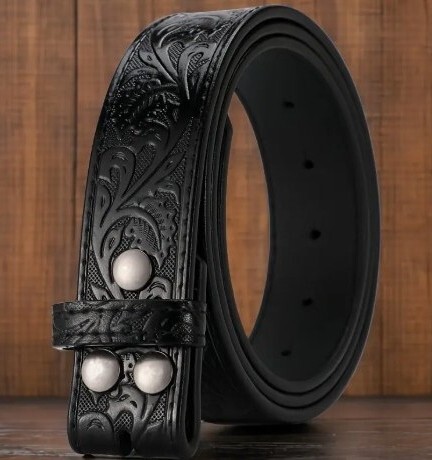 | ☆送料込み 本革型押しウエスタンベルト黒 110cm バックルなし ☆ | |