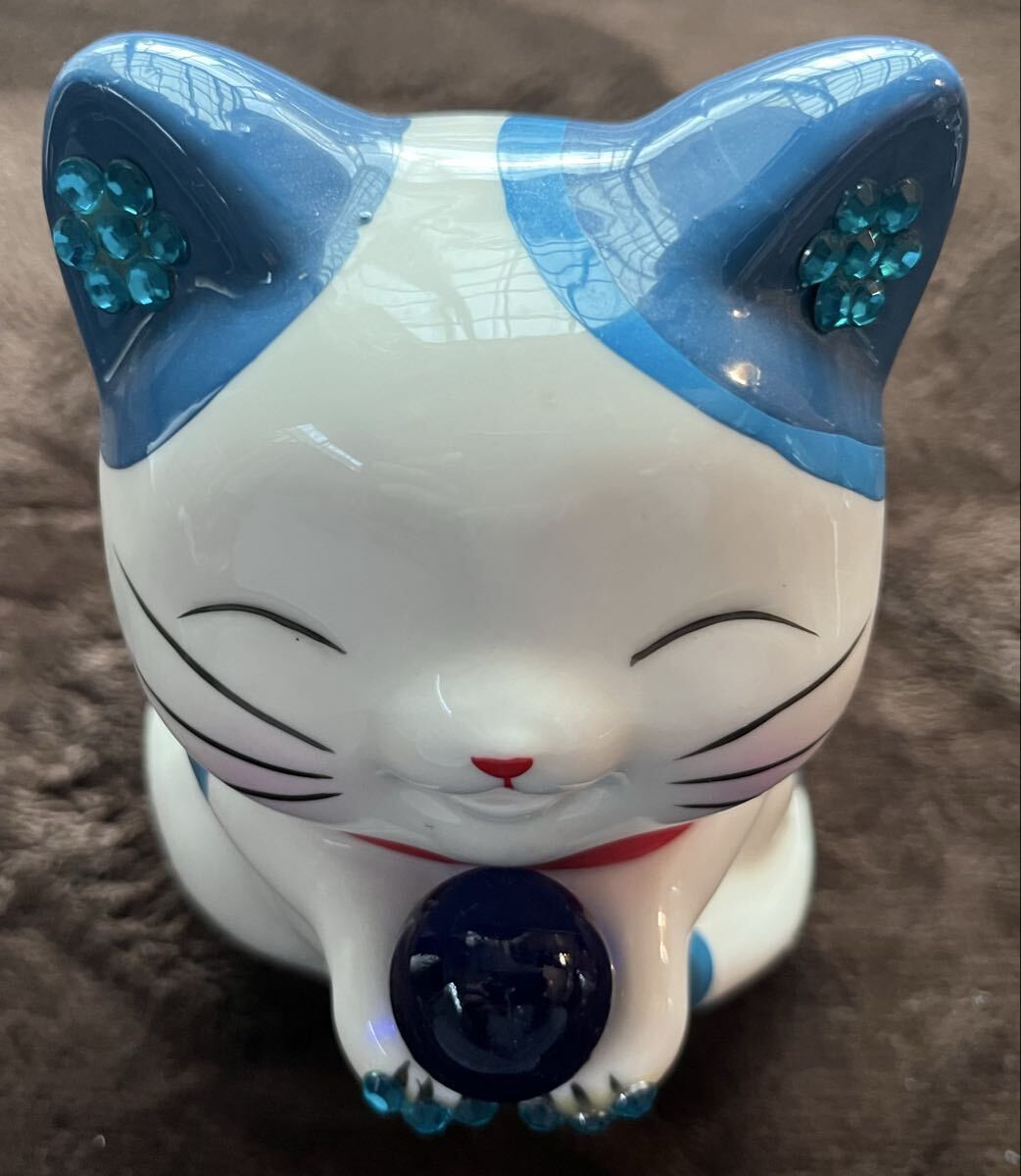 ご回覧いただきまして誠にありがとうございます。 貯金箱 招き猫 高さ約15cm 陶器製 置物 縁起物 ブルーストーン インテリアの出品になります。 底面にはやや傷や汚れあります。 猫自体はは美品になります。 貯金箱ではありますが、底面の受けがありません。 在庫整理のため出品致します。 中古品になりますので、神経質な方は、入札をお控えください。 |