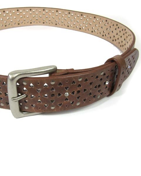 | 幅広のオシャレなベルト。ハートのパンチングやクリアストーンがついた可愛いデザイン。甘目スタイルにもカジュアルなスタイルにもコーディネートして頂けます。 |