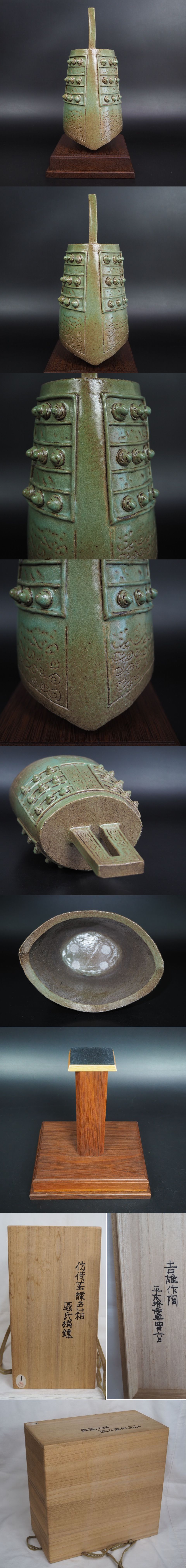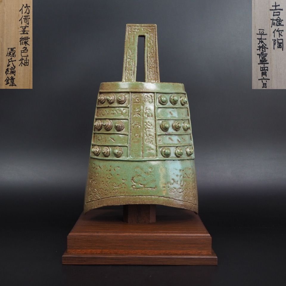| 商品説明 | 台込み 高さ約 31cm 台幅約 19×15.7cm ご覧のように、見事な緑色釉編鐘です。大変珍しい物です、存在感、迫力すごい。状態がとてもよい、完品無傷です。詳しくは写真でご確認ください。 |