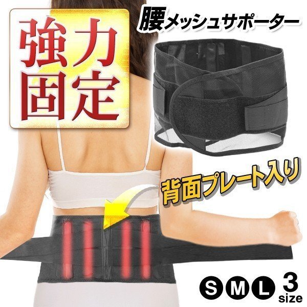 | 荷物の持ち運びや長時間のデスクワーク、立ち仕事に! プレート入りだからさらにしっかり支えられる「メッシュ腰サポーター」!
