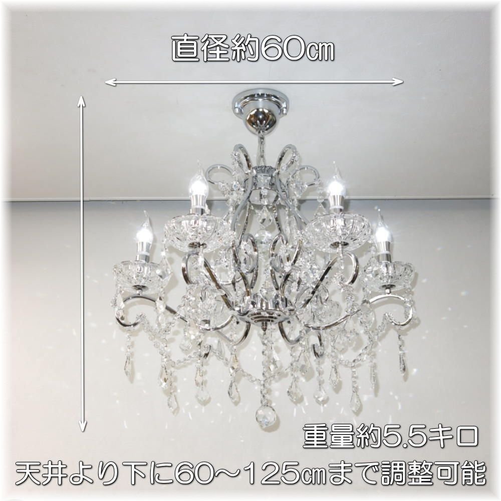 | 商品説明 | ![]() ☆LED電球サービスキャンペーン開催中!☆【送料無料!】新品 キャンドル6灯 クリスタル シャンデリア♪ ●キャンペーン期間中 広角LED電球6灯(¥7200-相当)お付けいたしまして驚きのプライス! ☆LED電球サービスキャンペーン開催中!☆ ※通常電球別売の為、価格記載の電球画像掲載がございますがキャンペーン期間中は無償提供(調光別途¥200-)させて頂いております※ ☆上質水晶ならではの最高の輝きを放つ新品クリスタルシャンデリア ☆添付画像では肉眼で見る本来のクリスタルの輝きをご確認いただけませんが、6灯の電球が上質クリスタル水晶を通し光の屈折で光の持つ本来のカラーをかもし出しダイヤモンドのように輝きながらワット数以上の明るさでお部屋を照らします ☆スタイルは飽きの来ないシンプルなデザインです♪ ☆とても明るくおしゃれなシャンデリアです ☆シャンデリア本体は調光にも対応しております ※調光ご希望の場合、調光対応LED1個¥200-アップと汎用調光器(Panasonic製LED用調光器推奨)が必要です ☆付属電球・・・口金E 17キャンドル型 広角LED 白色又は暖色6灯(明るさ40ワット消費電力4ワット 暖色36Lm/W・白色40Lm/W) ※調光対応LED1個別途¥200- ※注文後ご希望のLEDをお申し付けください ☆取り付けに関しましてはワンタッチでは御座いませんが(配線はワンタッチ)引掛けシーリングに対応しております ☆リビング等に最適なゴージャスクリスタルシャンデリアを是非この機会に! ☆サイズ・天井より下に最短60cm(飾り部分含む)から最長125cmまで調整可能 直径約60cm 重量約5.5キロです ※125センチ以上必要の場合はご注文後お申し付けください ![]() |