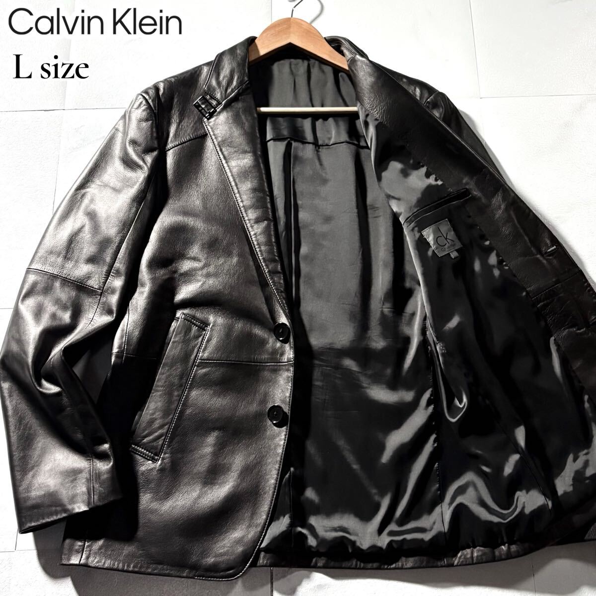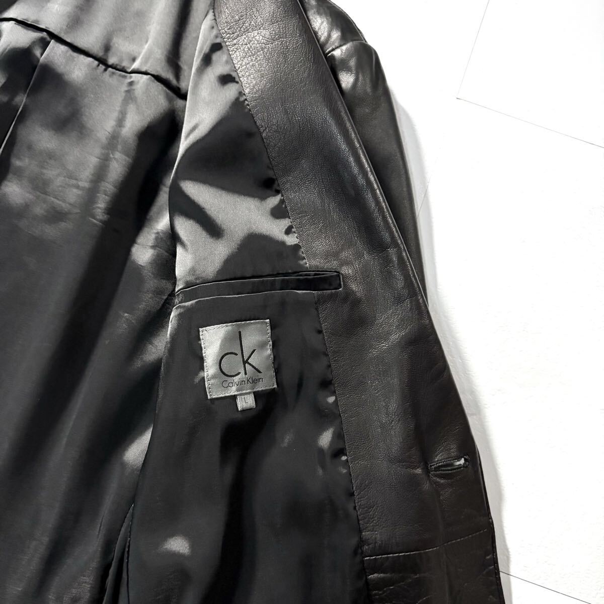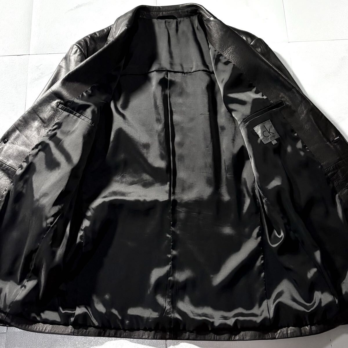 極美品/Lサイズ●極上トロトロ Calvin Klein カルバンクライン 羊革 ラムレザー テーラードジャケット ライダース 襟ベルト 黒 本革 [浏览原始页面]