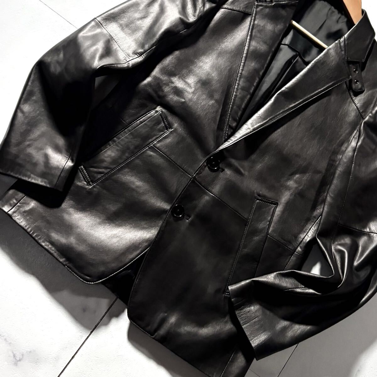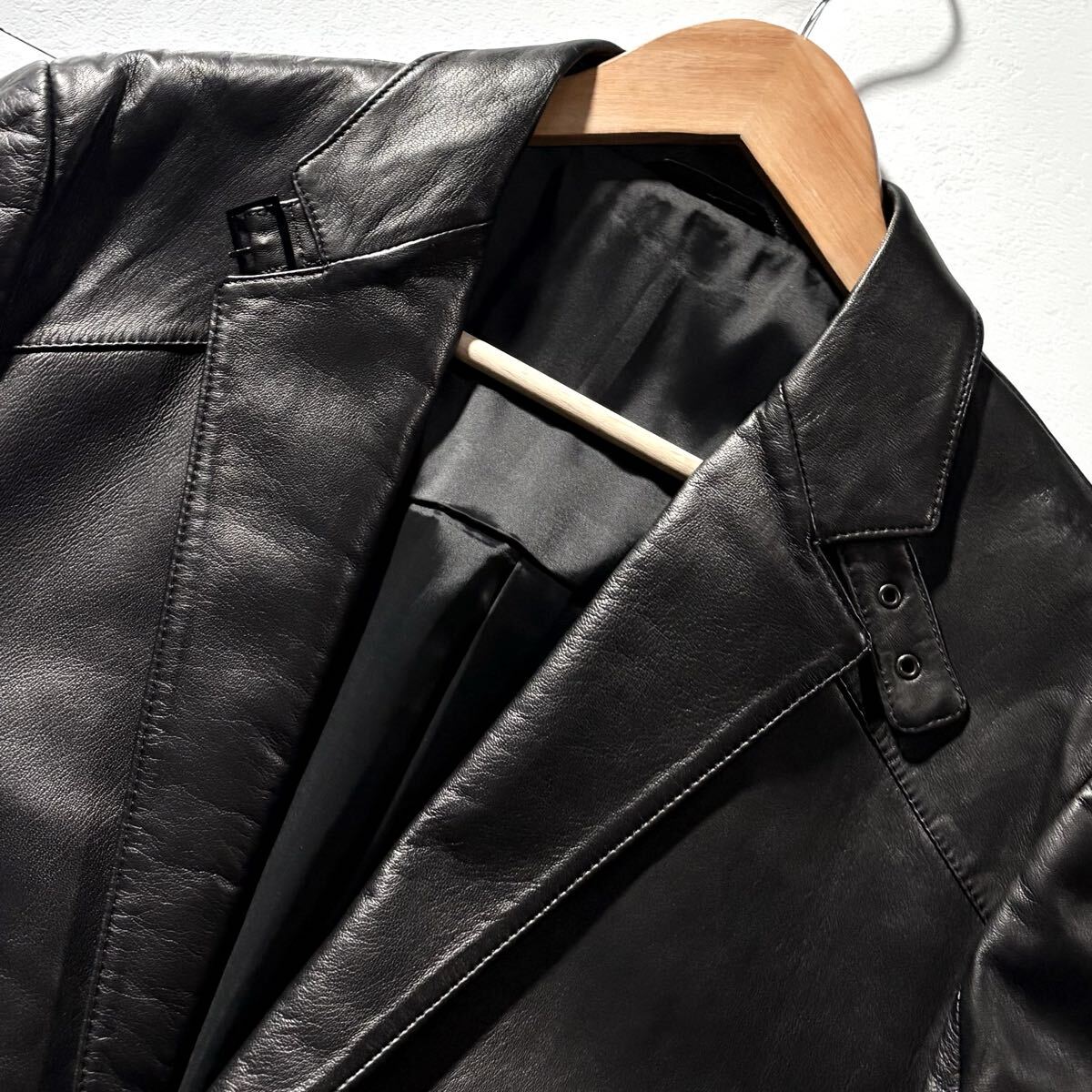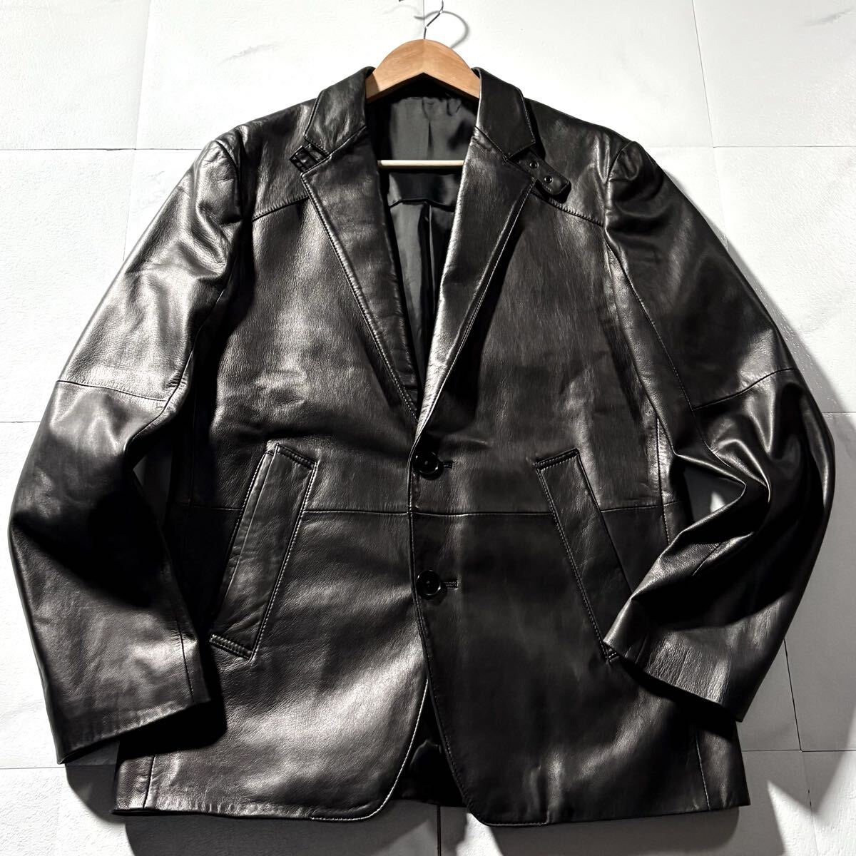 極美品/Lサイズ●極上トロトロ Calvin Klein カルバンクライン 羊革 ラムレザー テーラードジャケット ライダース 襟ベルト 黒 本革 [浏览原始页面]