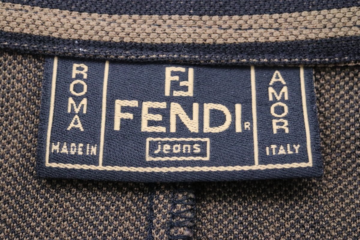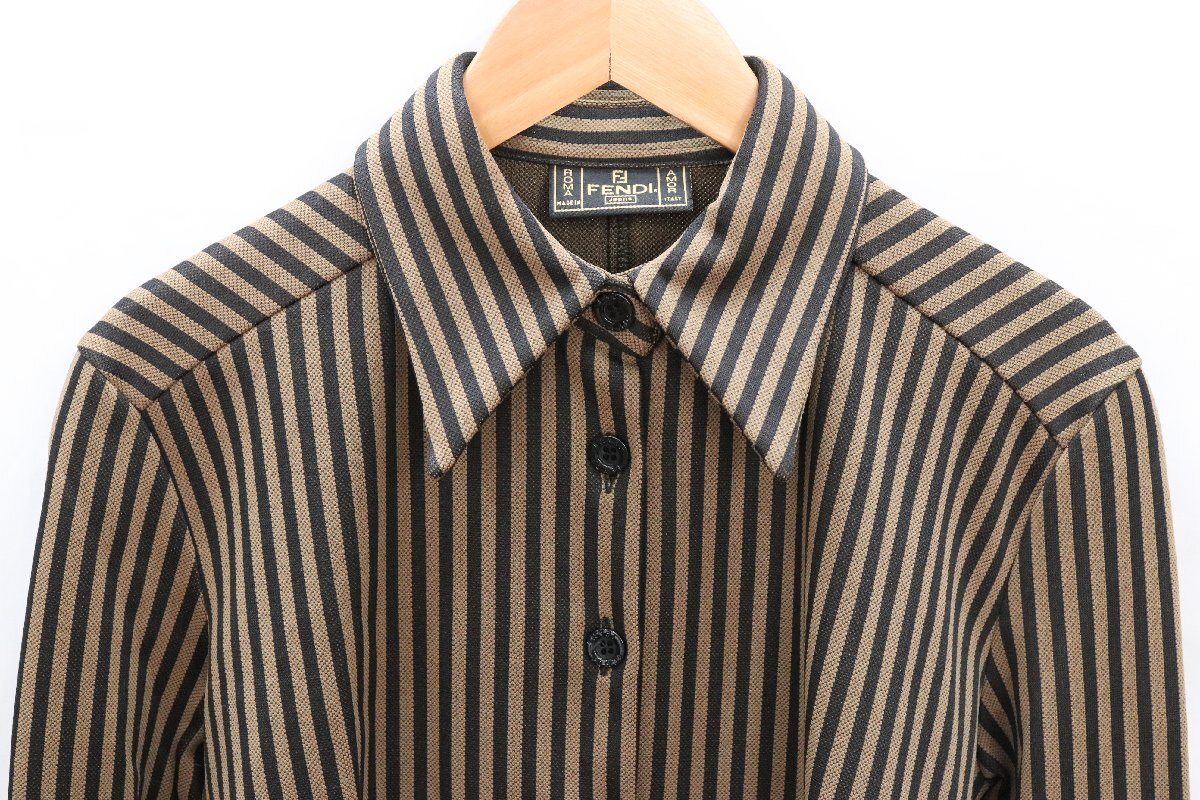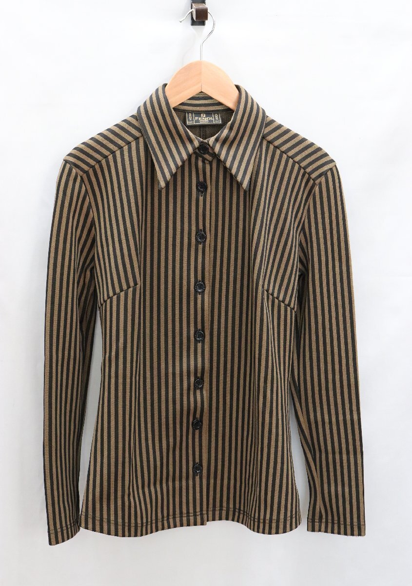 | FENDI フェンディ 長袖 シャツ ペカン柄 ストライプ サイズ24インチ ブラウン ブラック 茶 黒 イタリア製 | ||