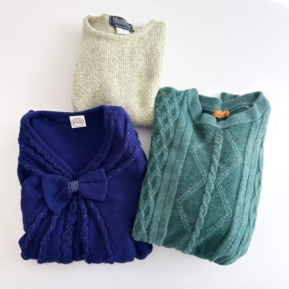 MaxMara WEEKENDの半袖ミックスヤーン、LANCELのケーブル編みクルーネック、McSISTERのリボンVネックの3点まとめ。| 出价者 | 信用 | 价格 | 时间 |