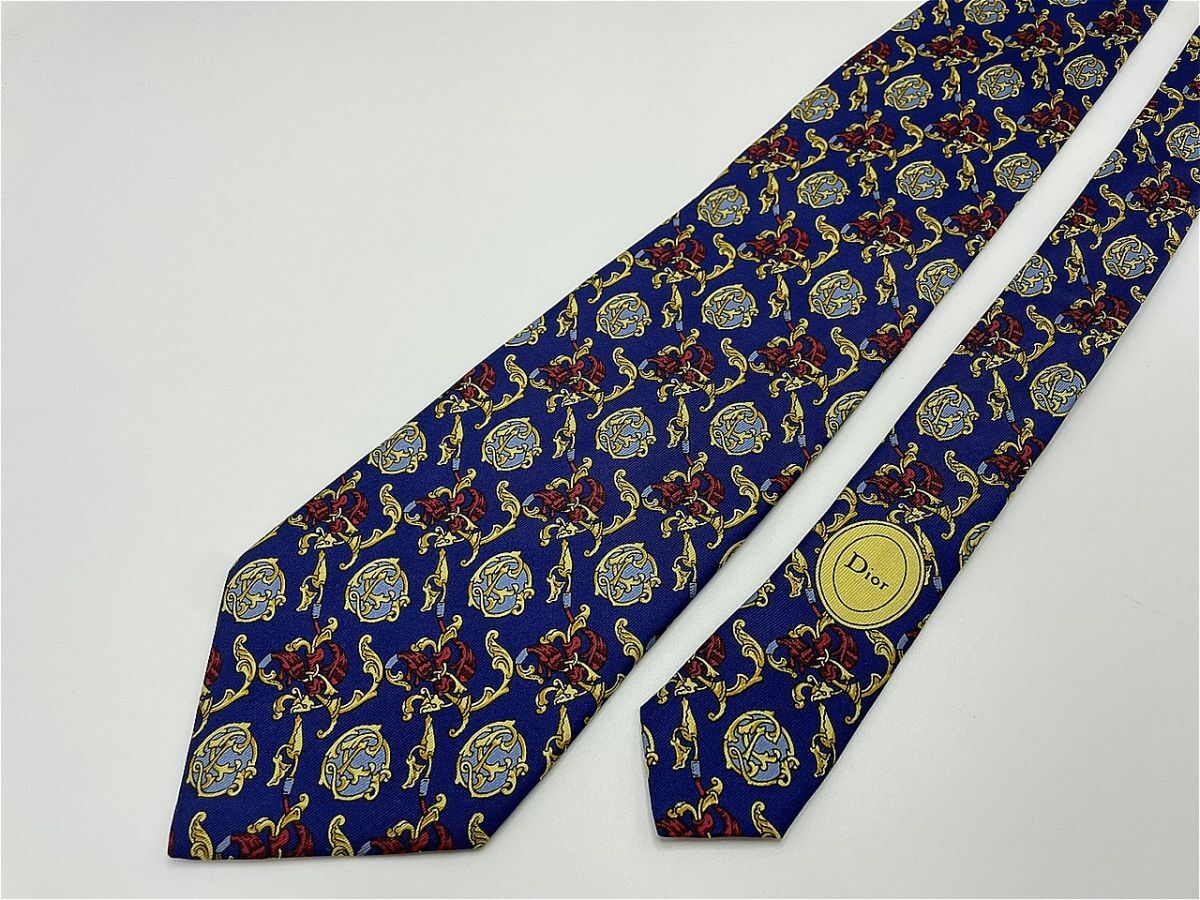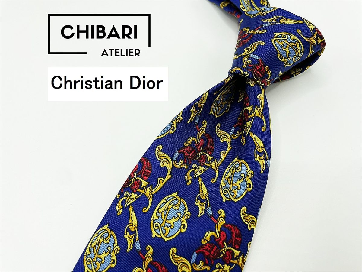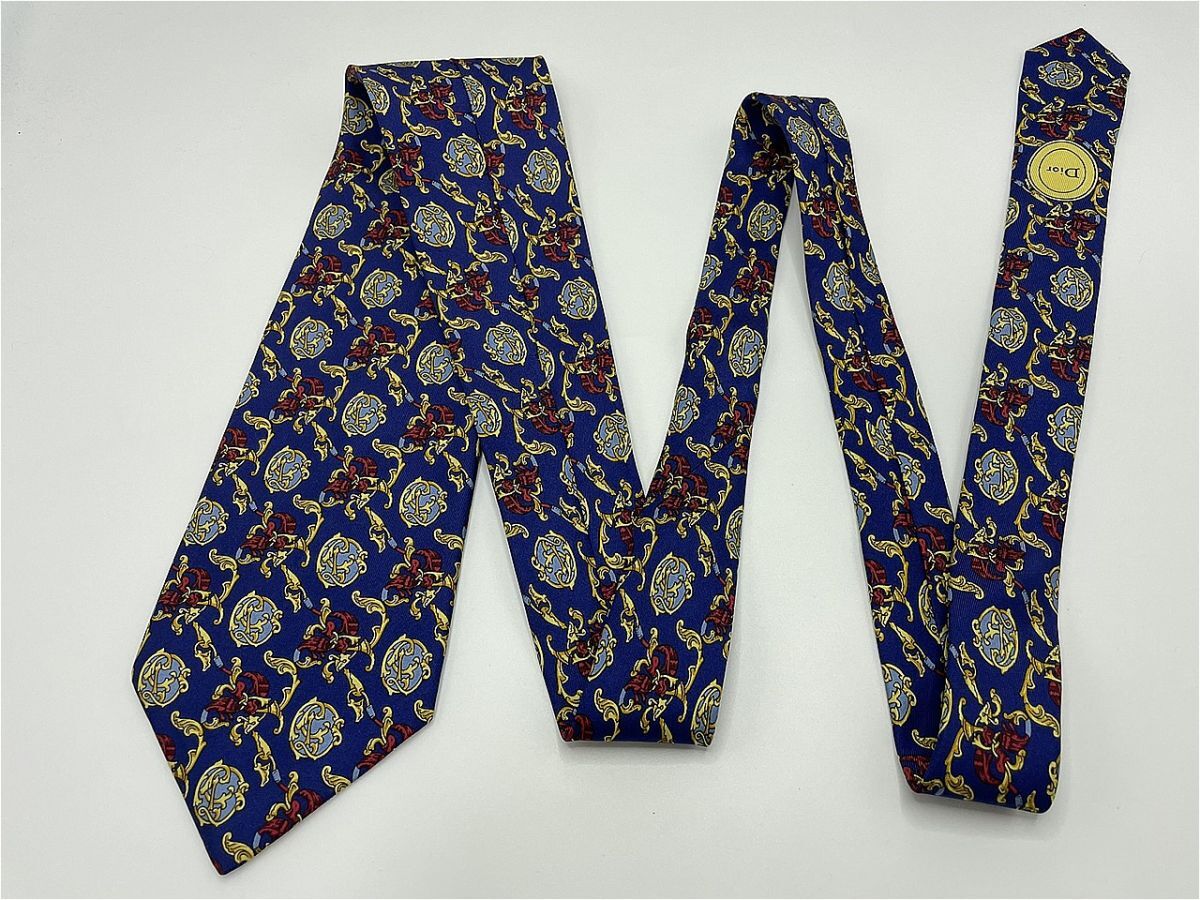【超美品】ChristianDior ディオール チェック柄 ネクタイ 3本以上 送料無料 メンズ ネイビー 1003156