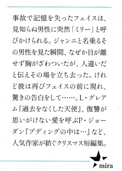 | 【商品名】 アンソロジー『聖なる夜に、もう一度』リン・グレアム他 ハーパーコリンズ・ジャパン MIRA文庫 2020年11月15日第1刷発行 定価:873円(税抜) | |
