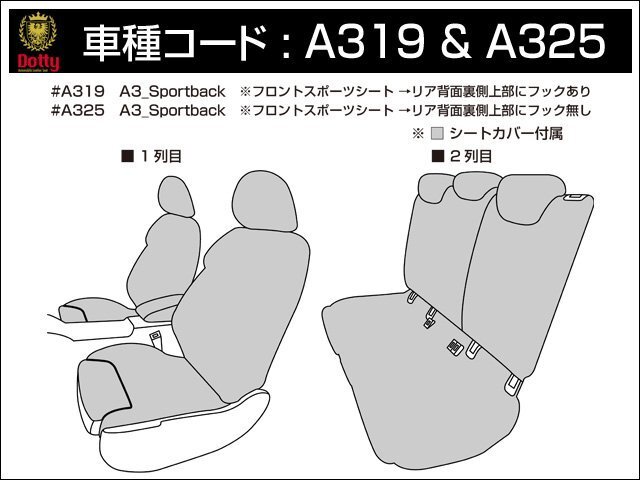 | 適合シート形状 | フロントスポーツシート、リアセンターアームレストなし リア背面裏側上部にフックなし |