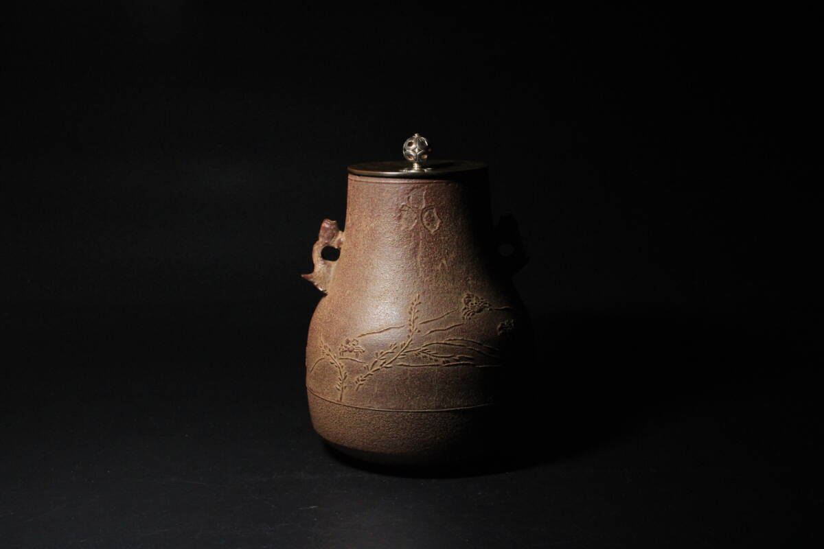 | 商品説明 | 状態 : 無傷 内部には若干の錆が見られます。 底面にも薄っすら変色が見られますが、使用回数はほんの数回と思われます。 形と地紋がとても良くマッチしており、肌の柔らかさや鯉の躍動感等々見所満載の逸品です。 銀の摘みもワンポイントで、引き締まった印象を与えます。 中々お目に掛かれないと思いますので、この機会に是非如何でしょうか。 径 17.9cm 寸法 : 高さ 24.4cm蓋摘まみ含む 箱 : 共箱 |