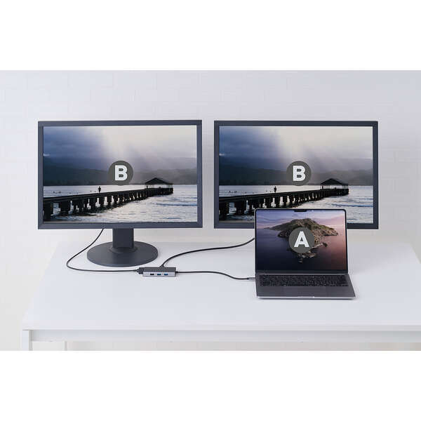 | ●4K対応HDMIポートと1080p対応VGAポートを使用して、同時に2画面へ出力することが可能 | |