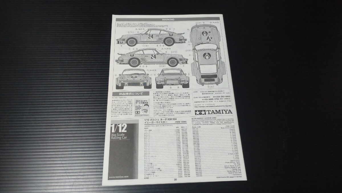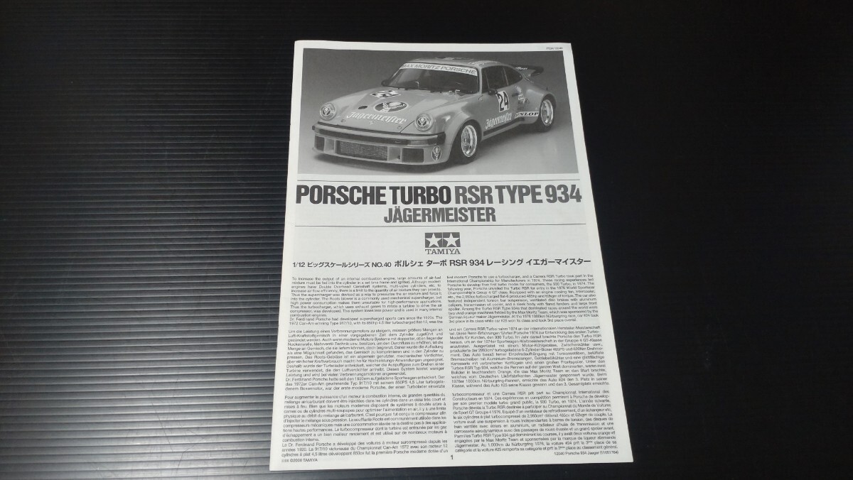 タミヤ 1/12 ビッグスケールシリーズ No.40 ポルシェ ターボ RSR 934 レーシング イエガーマイスター 説明書のみ 中古品