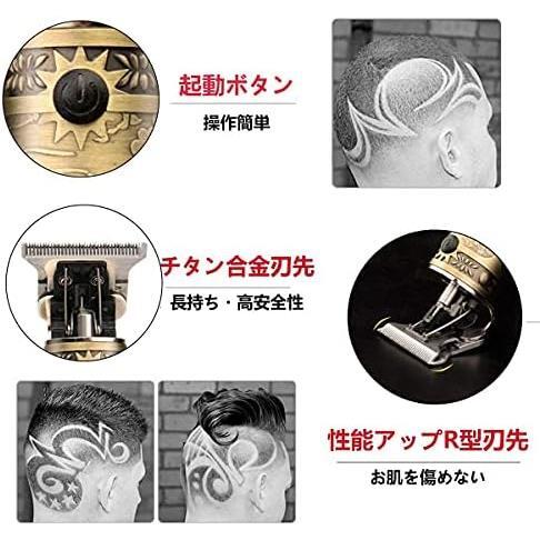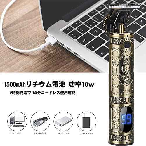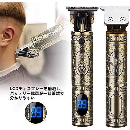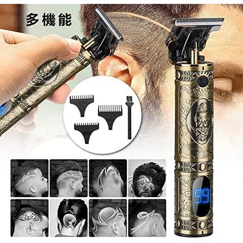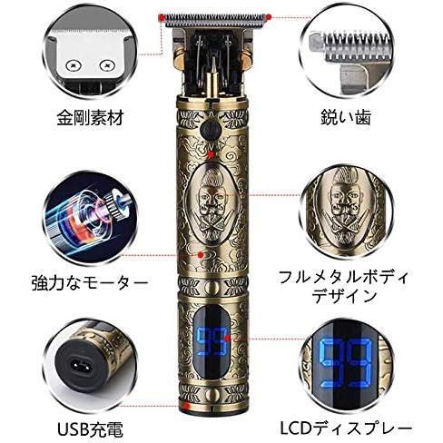 ゴールド バリカン Soonsell 電動バリカン ヘアカッター LED充電残量表示 ヘアトリマー 精密彫刻 メンズT字カミソリ USB充電式 コードレス