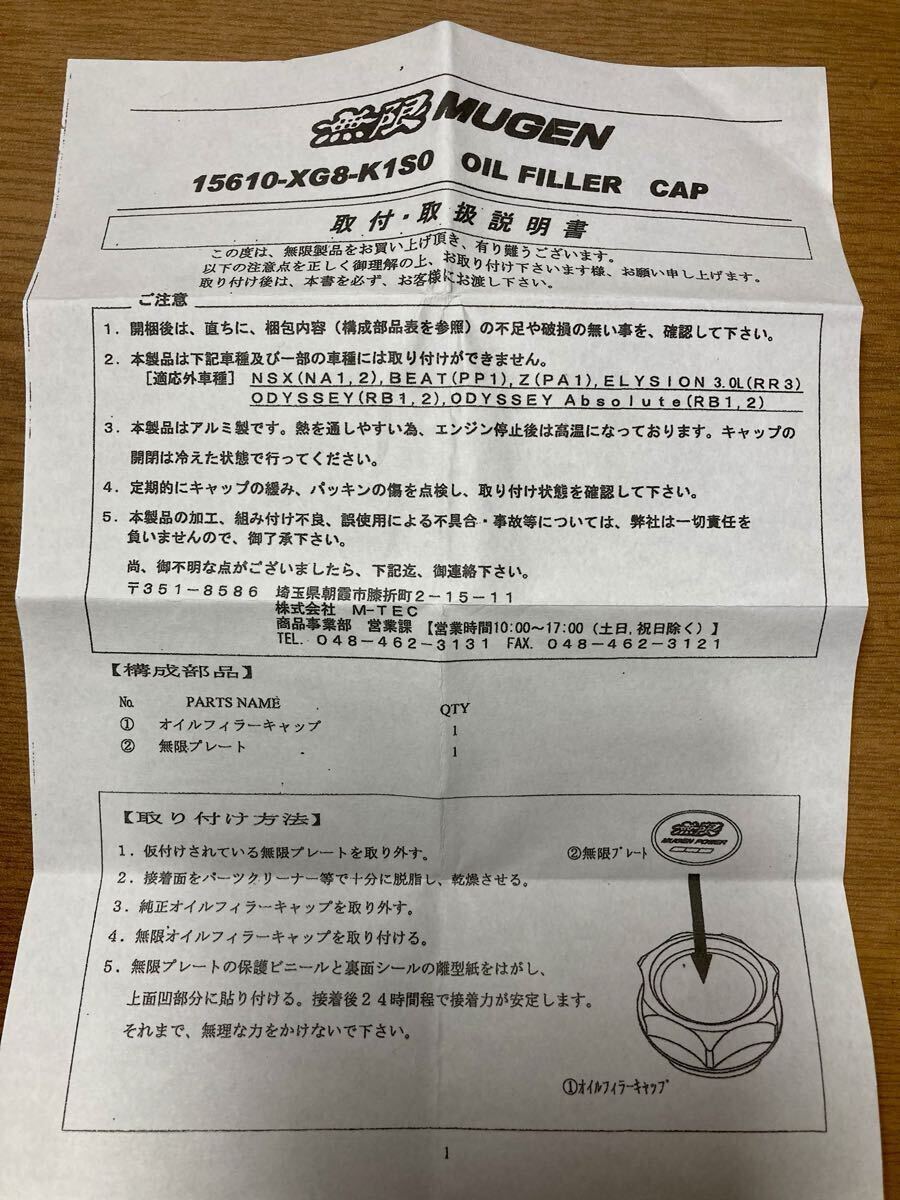 無限 (MUGEN) オイルフィラーキャップ です、購入して1週間使用しました。| 出价者 | 信用 | 价格 | 时间 |