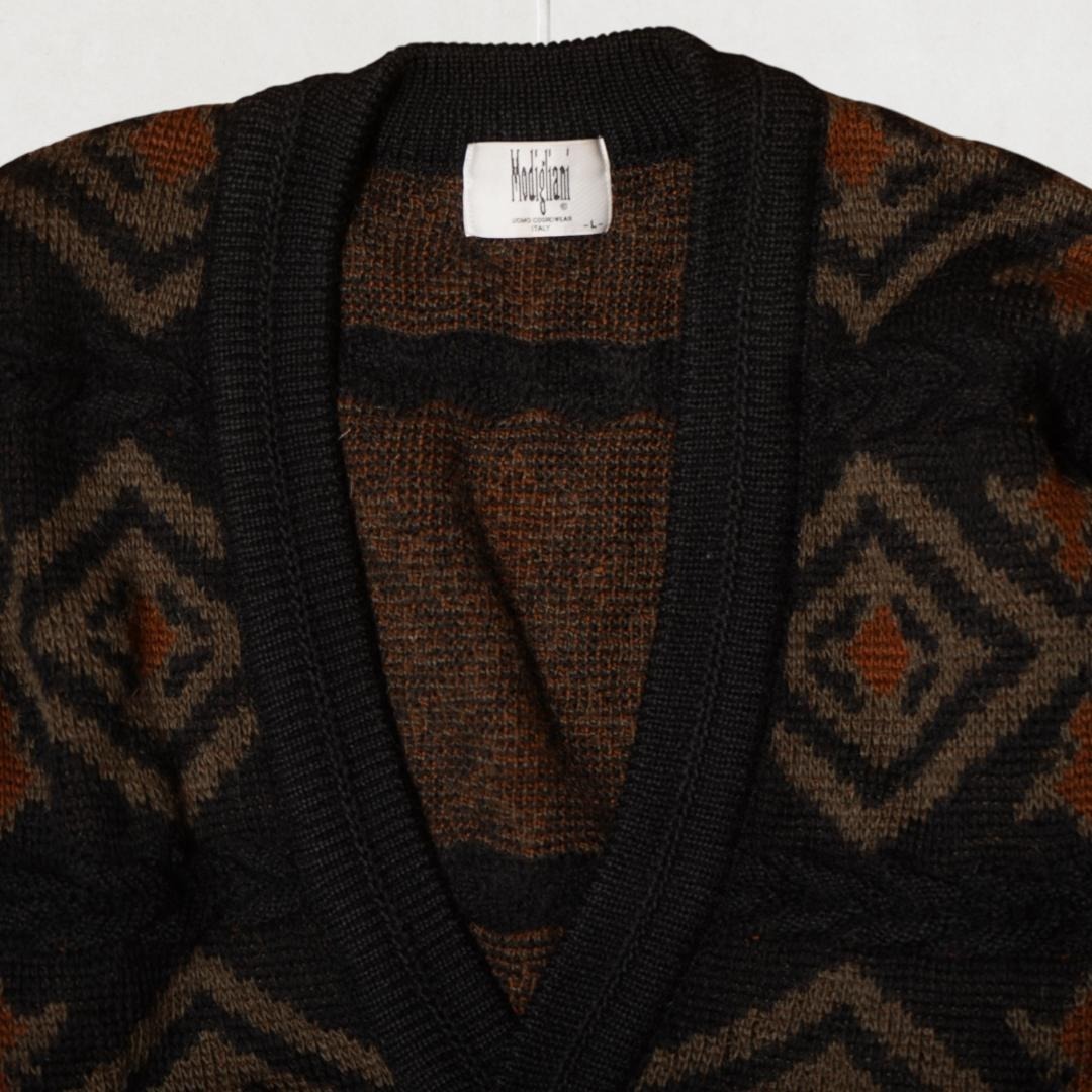 J1636@ 1スタ Modigham モディガム イタリヤ製 ニットカーディガン L ブラック 総柄 ジオメトリック [浏览原始页面]