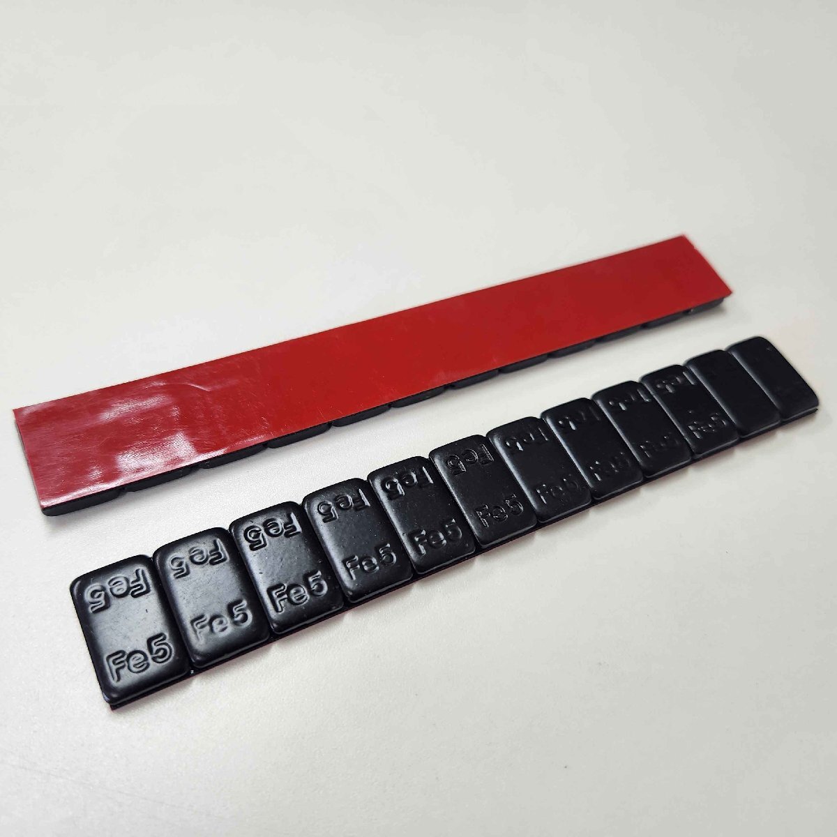 | 強力な両面テープの張り付け式バランスウエイトです。 5g刻みで3kg×10箱 計30kgのご用意となっています。 黒色について鉄ホイールや黒色のホイール等に目立たず張り付けする事ができます。 |