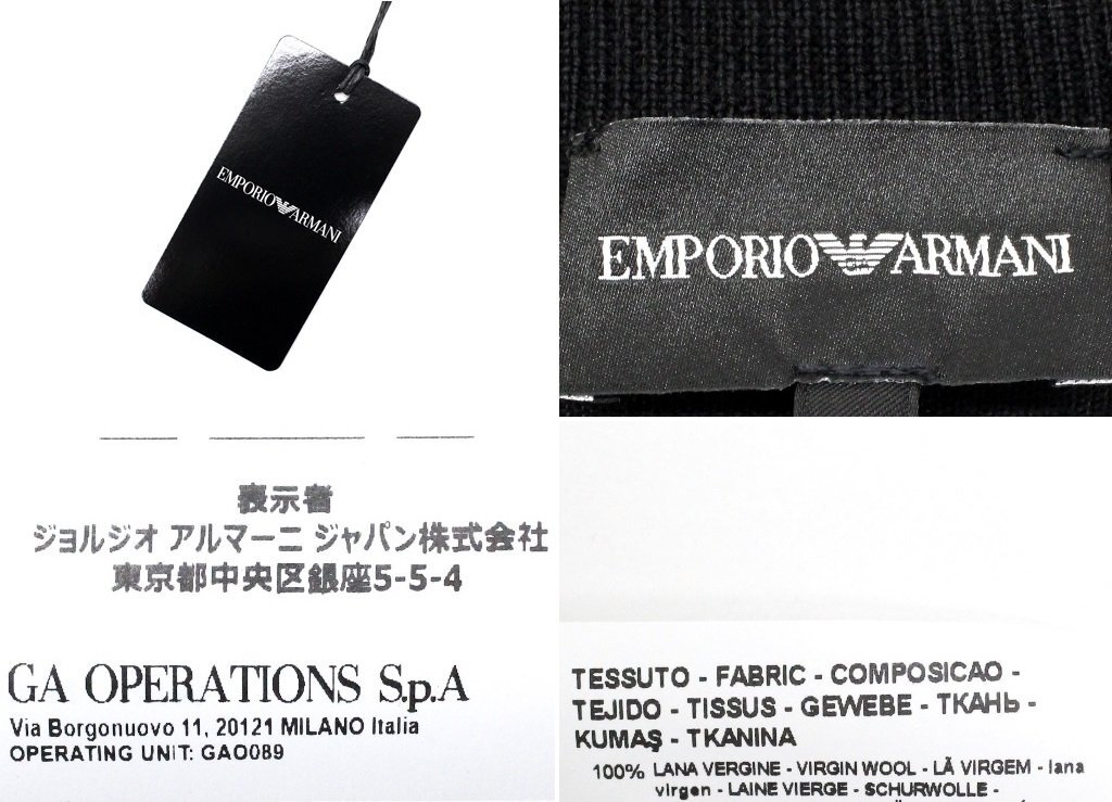 ●7万新品◆XL◆EMPORIO ARMANI アルマーニ◆ヴァージンウール100% 薄手クルーネックニットセーター 黒ブラック 1円