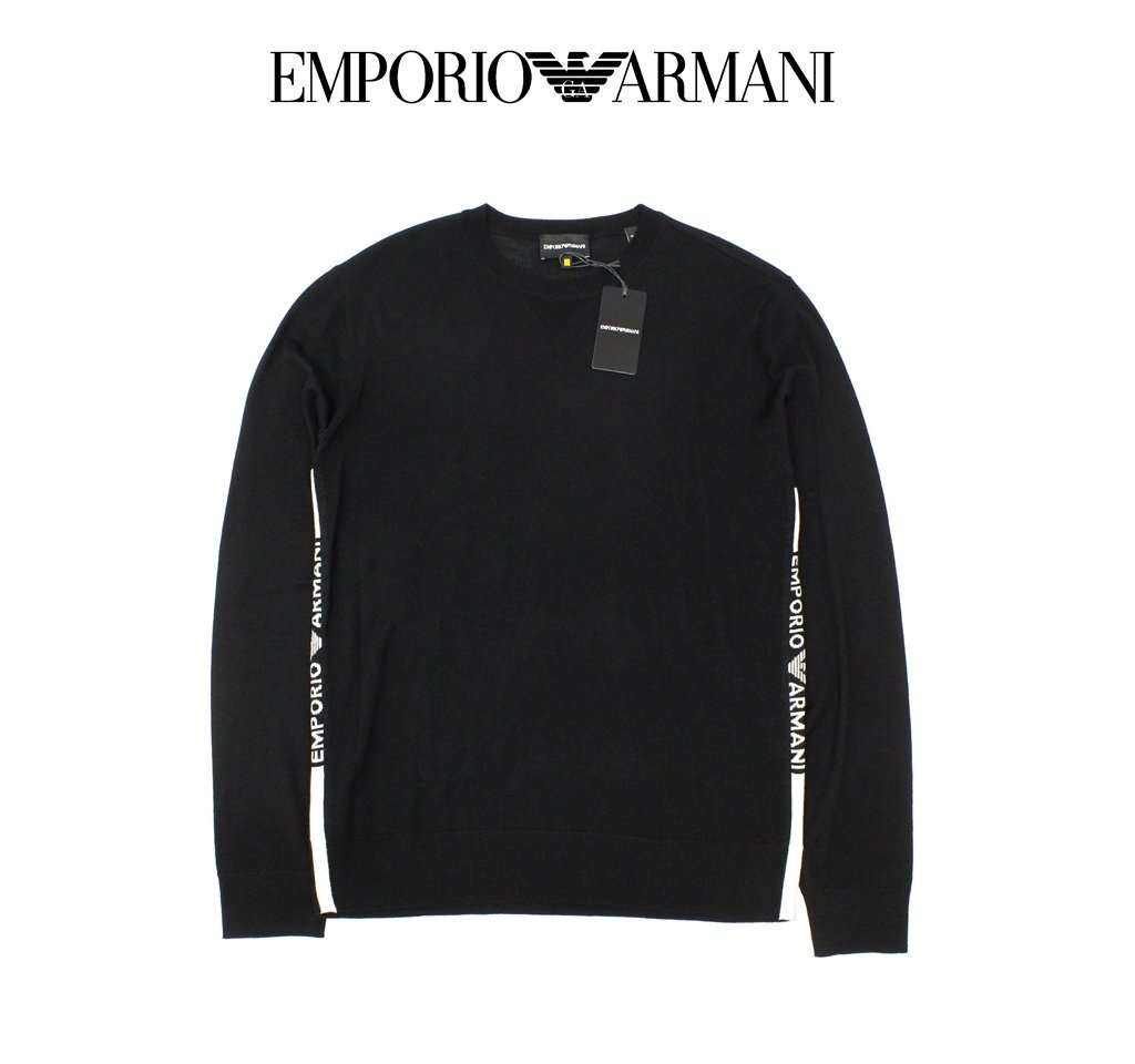 【商 品】・・・7万新品◆XL◆EMPORIO ARMANI アルマーニ◆ヴァージンウール100% 薄手クルーネックニットセーター 黒ブラック