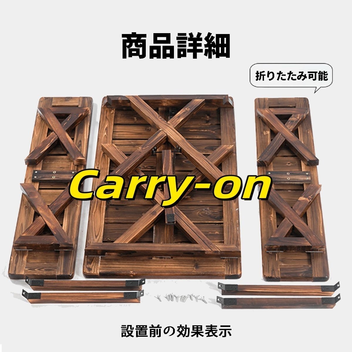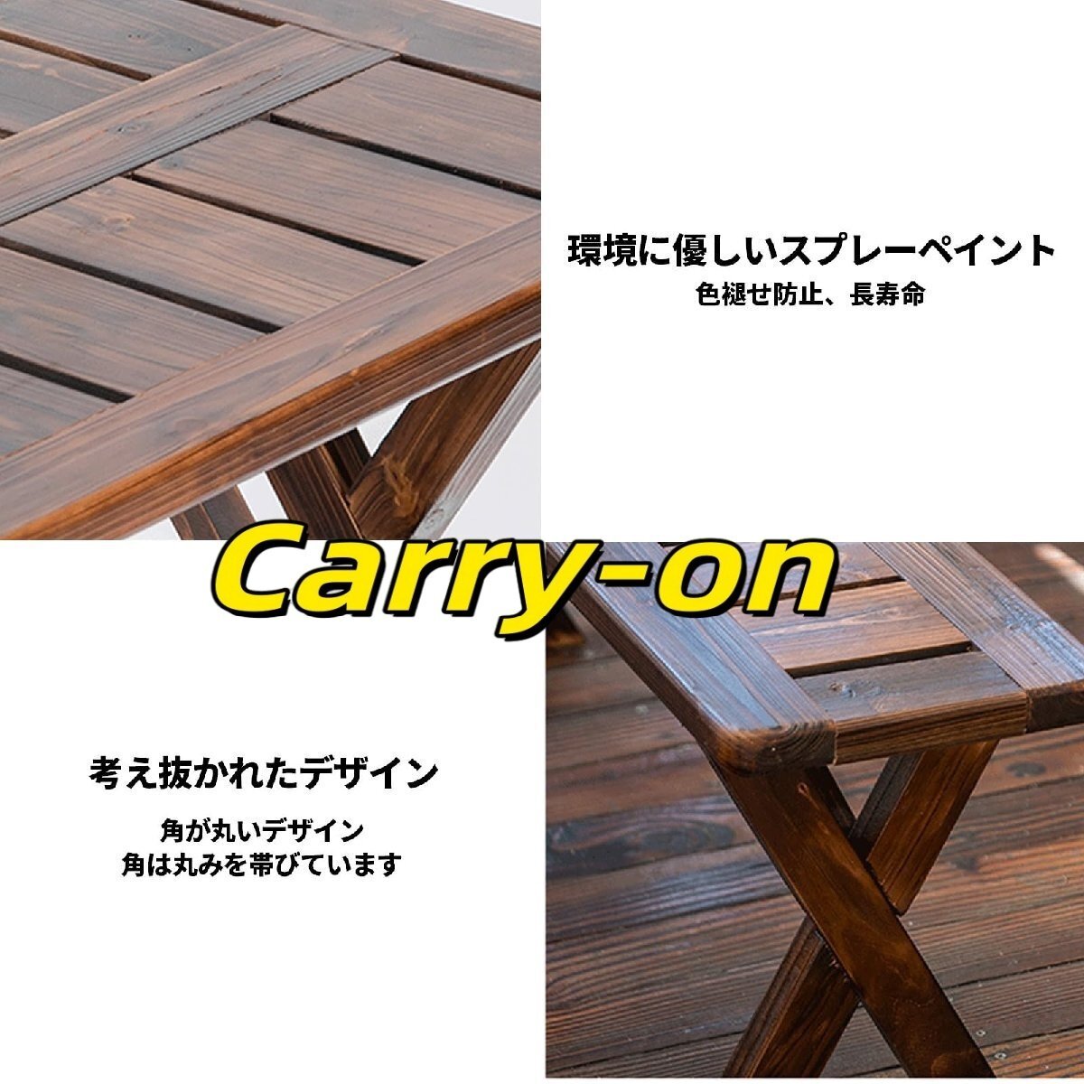 特徴>屋外用テーブルと椅子のセットは無垢材で作られています。>角を丸く設計し、衝撃による損傷を防ぎます。>折りたたみ式のデザインで、保管や持ち運びが簡単です。>安定した構造、耐荷重130kg、迅速な設置。仕様色: 炭化材質: 無垢材スタイル: モダンでシンプル家具構造:フレーム構造追加機能: 折りたたみ可能テーブルサイズ: 110x60x65cm椅子のサイズ: 110x25x40cm梱包内容: テーブル x 1、椅子 x 2ヒント:モニターの設定により、実際の色は画像と異なる場合がありますので、実際に受け取った製品を参照してください。