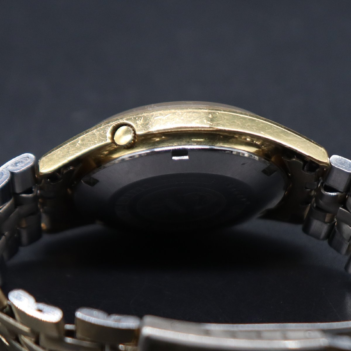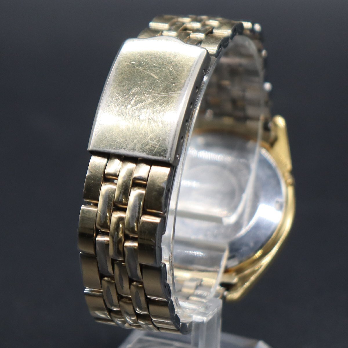 令和7年11月、当店専属の時計修理店/一級時計修理技能士にてOH済です。 OH後、平置きで24時間動作確認済み、±30秒以内で遅れなく稼働中です。 次回メンテナンス時期まで安心してお使い頂けるかと思います。 リューズ一段引きで日付早送り、二段引きで時刻調整が可能です。 曜日早送り機能はございません。 ※カレンダー早送り機能は、商品同封の使用上の注意を必ず守り、 丁寧に、やさしく操作していただくようお願いいたします。 全体に経年のキズ・打痕メッキ削れなどの傷み、 風防のフチに小キズございますが、 文字盤は微細なチリやわずかな小傷み程度で、 針やインデックスなどは比較的傷み少なく、 プリントロゴや印字は鮮明で、視認性は良好です。 経年からすると、きれいなダイアルです。 裏蓋、スレございますが、イルカ王冠マーク概ね良好です。 ブレス、スレとタレ、メッキ薄れございますが、 通常使用に問題ございません。 古いお品物ですので、状態は画像にてご判断ください。 |