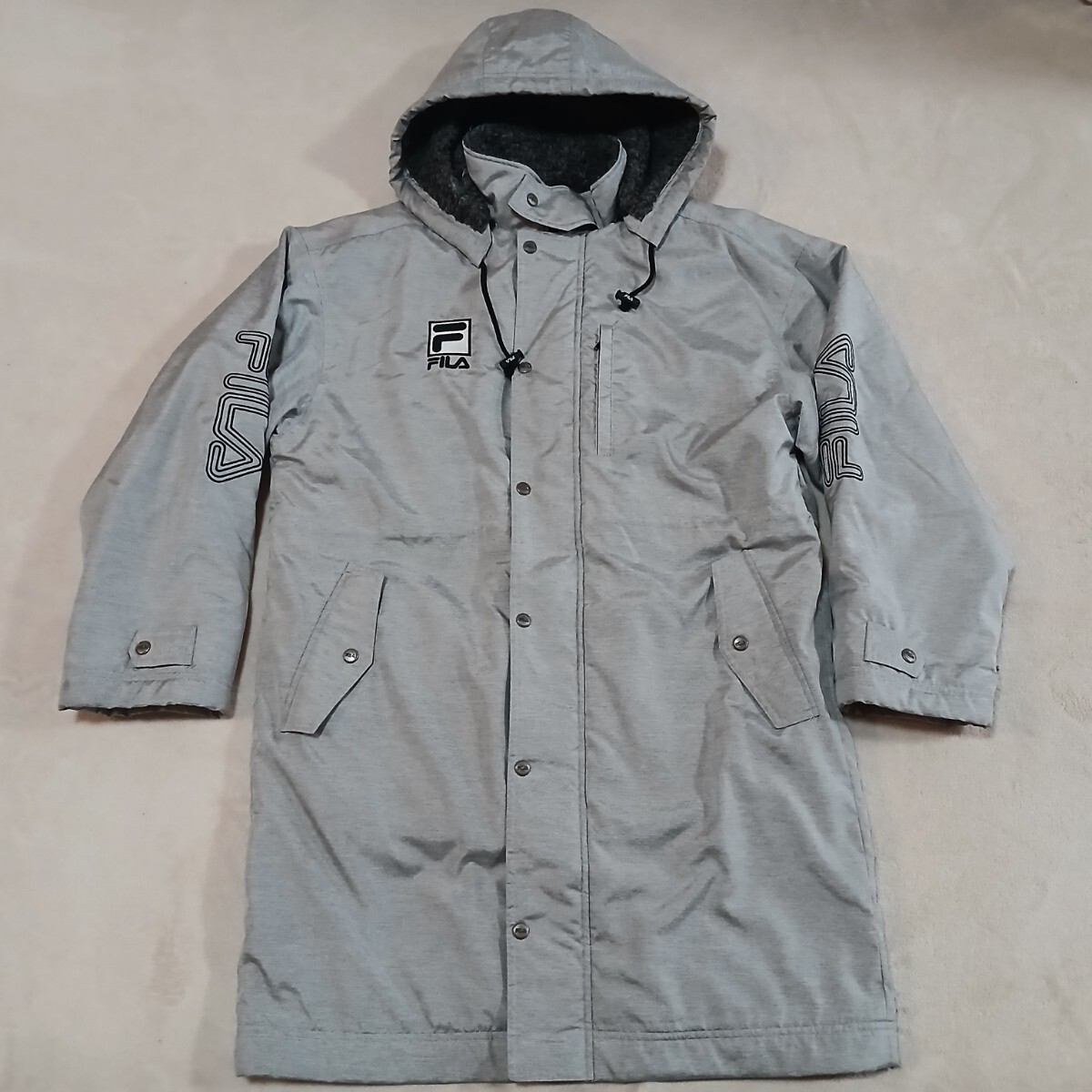 FILA Mサイズ 裏ボア ベンチコート ジャンパー 防寒 グレー ライトグレー ロング フード着脱可能 刺繍 ロゴ フィラ 中古 古着 送料無料| 出价者 | 信用 | 价格 | 时间 |
