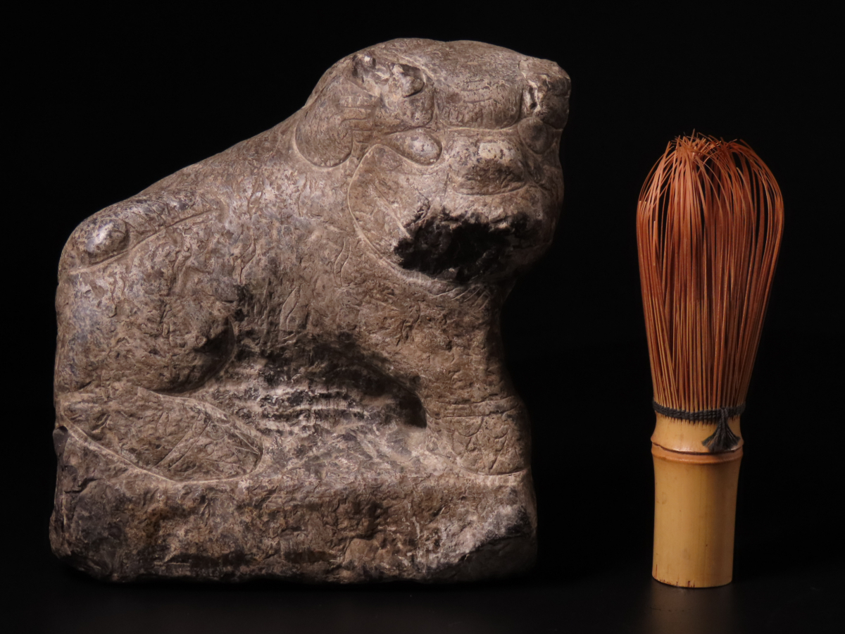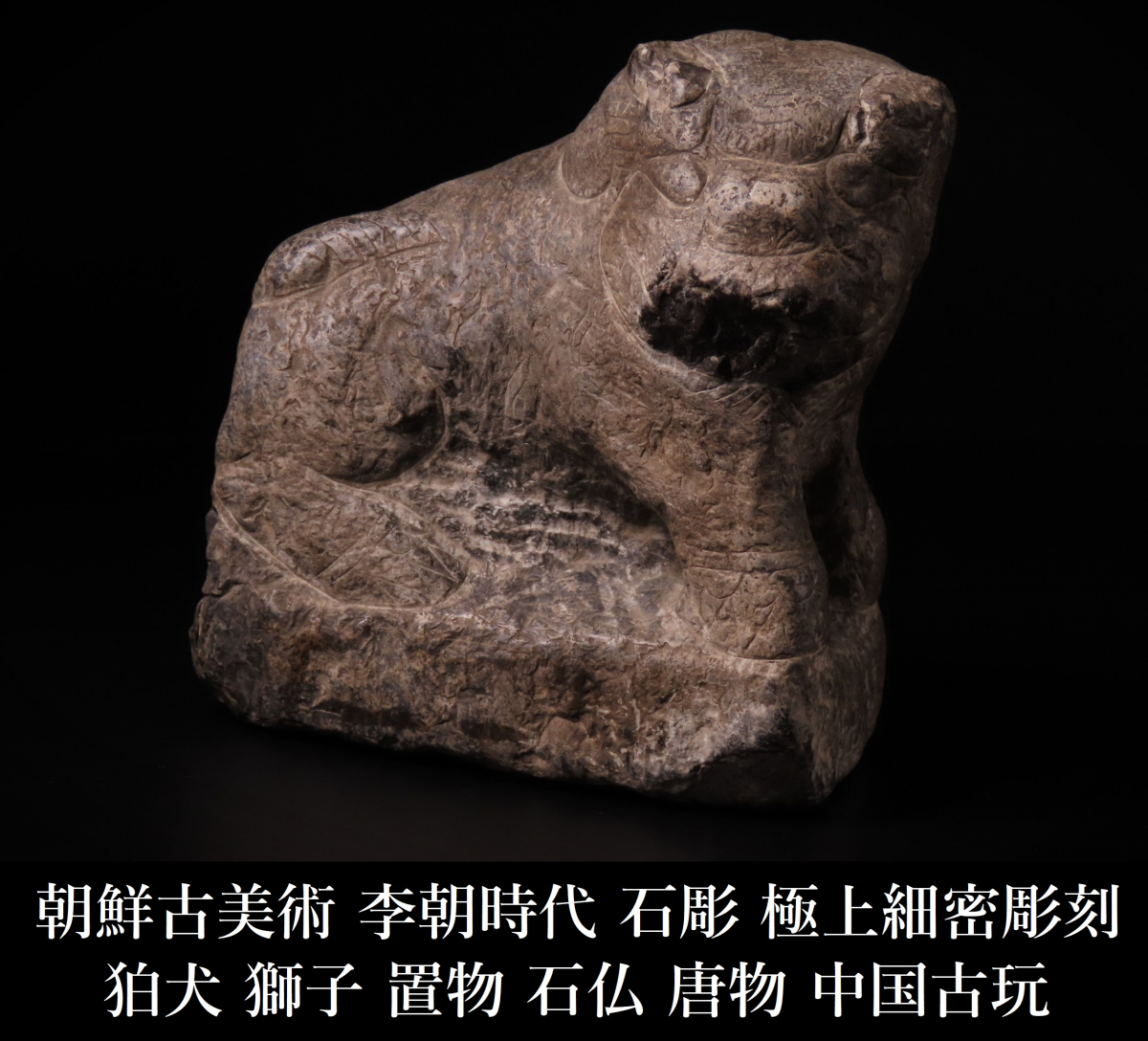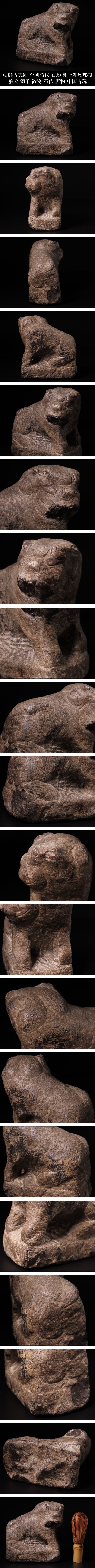 【ONE'S】朝鮮古美術 李朝時代 石彫 狛犬 獅子 極上細密彫刻 置物 石仏 唐物 中国古玩 古美術品 | |||