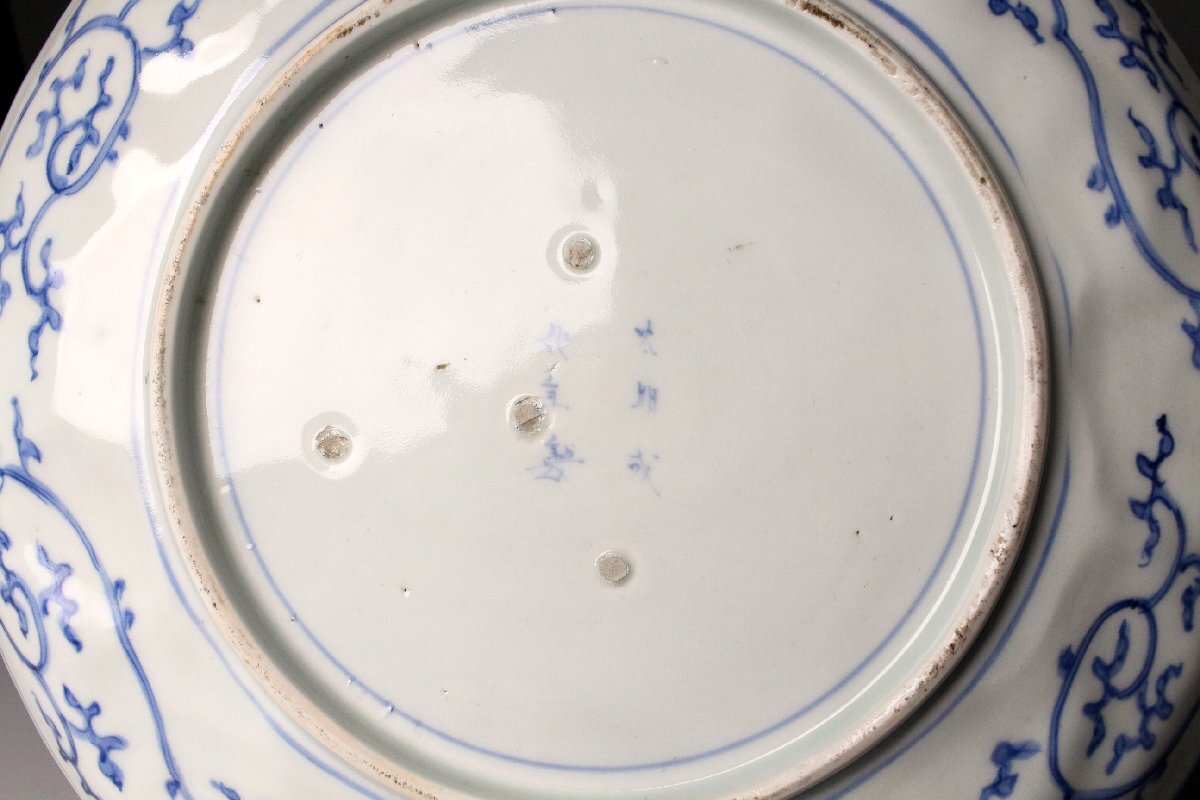 [.QR]25.11 25111101T* * * 商品詳細 * * * ここでしか出逢うことのできない唯一の美をご紹介させて頂きます。 直径30cm、堂々たる姿で魅せる古伊万里・染付の陽刻牡丹文大皿。 画面いっぱいに施された牡丹の陽刻は、まさに浮かび上がるような立体感をもち、 光のあたり方で陰影が際立ち、染付の藍と共に優美な景色を生み出しています。 陽刻によって添えられた力強さと、染付の柔らかな筆致が見事に調和し、 ただの装飾を超えて、器全体が華やぎを帯びたような存在感を放ちます。 古伊万里の美を存分に楽しみたい方に、ぜひ手に取っていただきたい作品です。 ■サイズ/横30㎝×高3.5㎝ ■状態/経年による スレ、小傷、汚れがございます。 ※写真にてご確認、ご了承の上ご入札下さい。 ※皿立ては付属致しません。