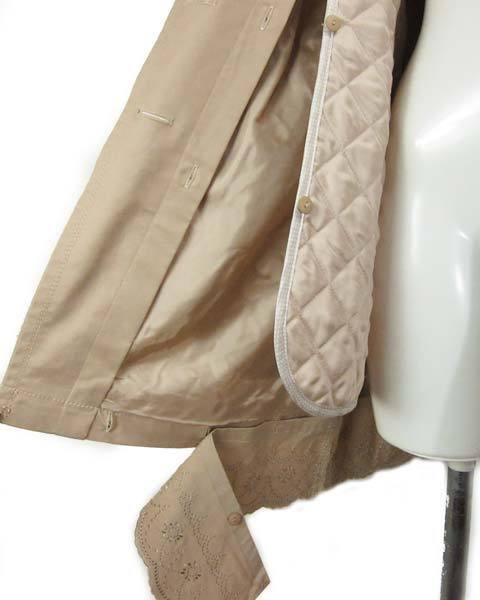 | コメント | フェミニンなデザインのトレンチコート。 裾の切り替え部分は取り外しができ、中のお洋服の雰囲気などで 丈を変えることができます。 ファー部分や身頃部分のライナーの取り外しができますので 長いシーズンで重宝するアイテムです。 取り外しの出来る裾部分は8cmくらいになります。 |