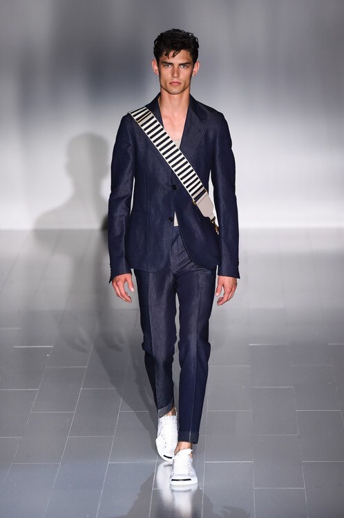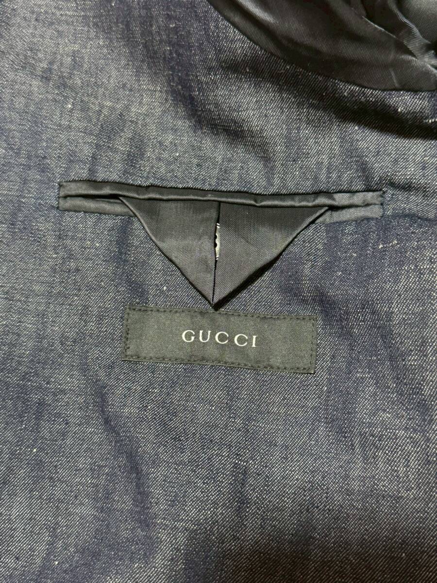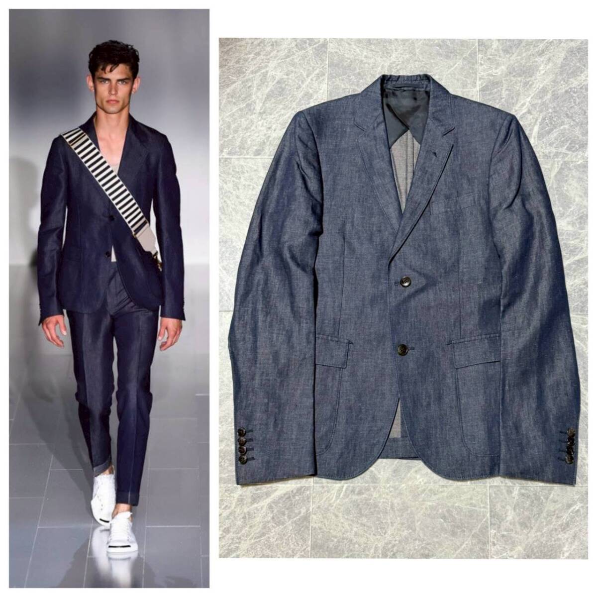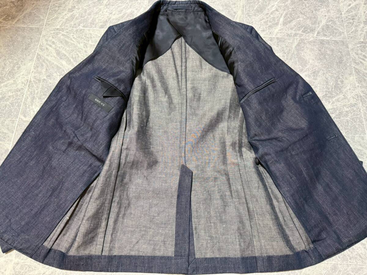 商品名: 定価約29万円 GUCCI Collection グッチ コレクション ランウェイ リネン コットン デニム 2B テーラード ジャケット サイズ46 ネイビー 紺