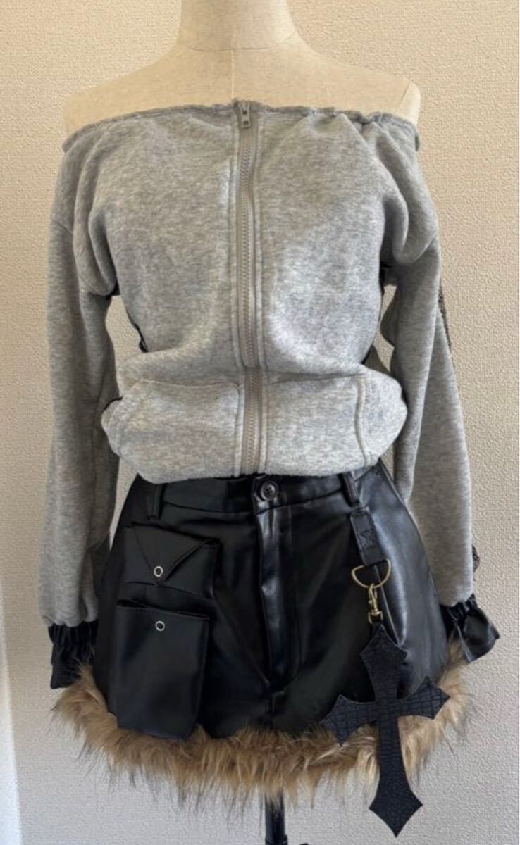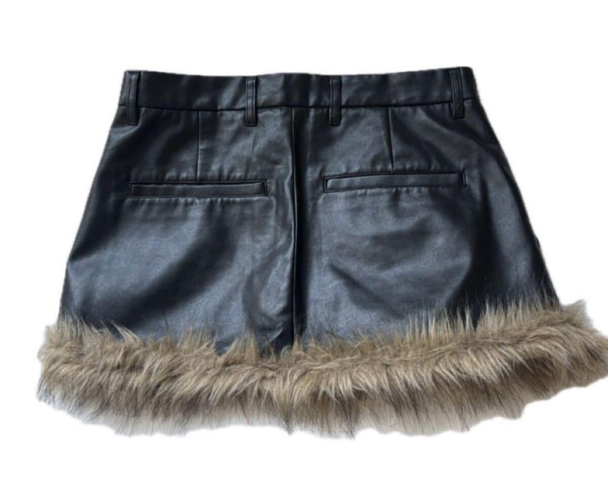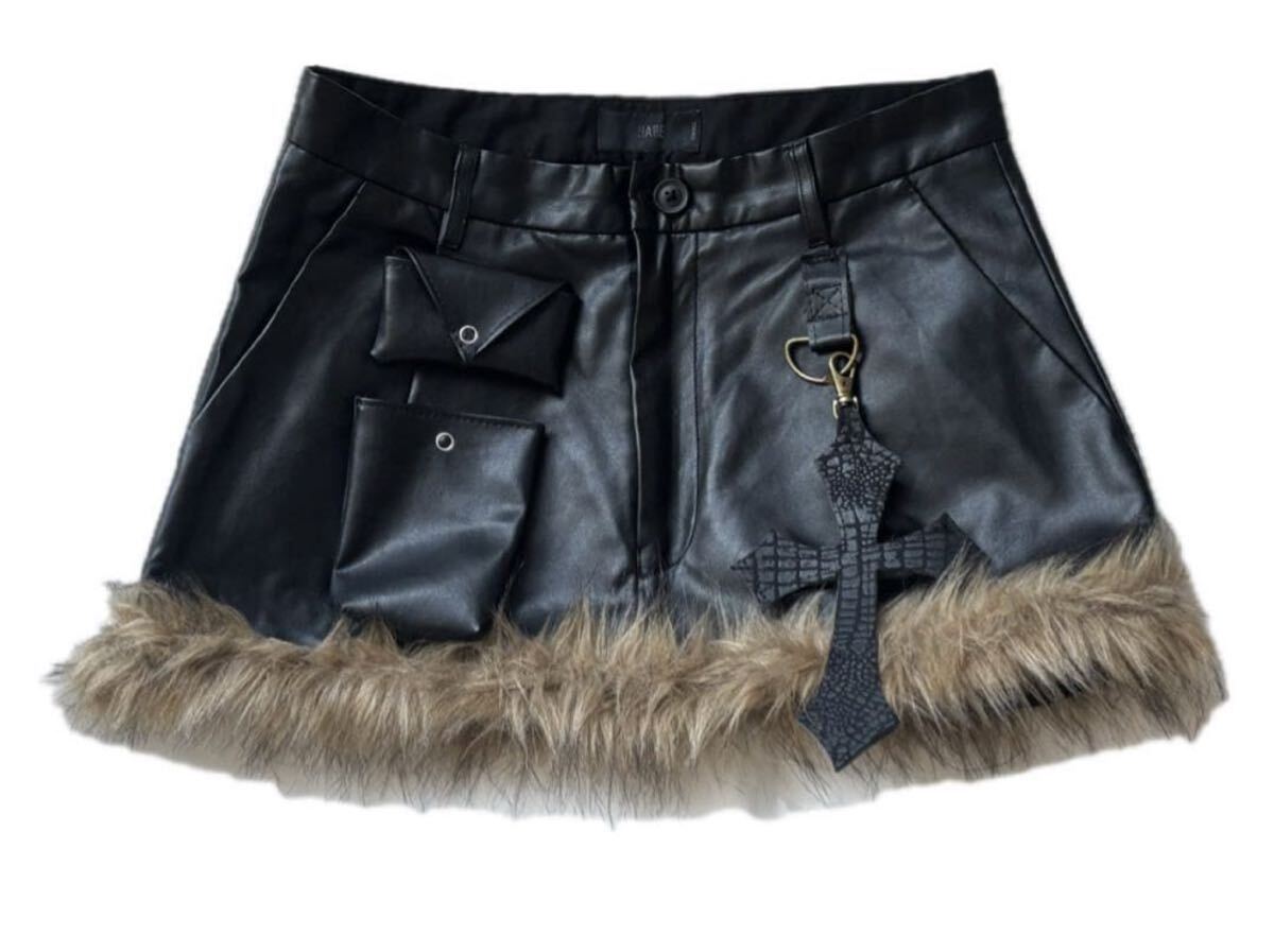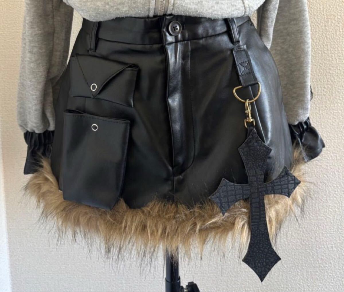 ファー付きのレザーミニスカート、2つのポケットとクロスチャームが特徴。| 出价者 | 信用 | 价格 | 时间 |