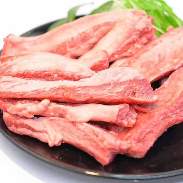 バラの部分の骨と骨にはさまって付いているお肉のことで、肋骨から外した凸凹の形が下駄の形状に似ているところが名前の由来となっています。 骨と骨の間にある肉なので骨からでる旨味を含んでおり、通常のカルビよりも肉の味が濃く、常に呼吸をして動いている肋骨の部分に当たる肉なので若干硬めの食感で、脂身も筋もほかのカルビに比べると多くなります。 |