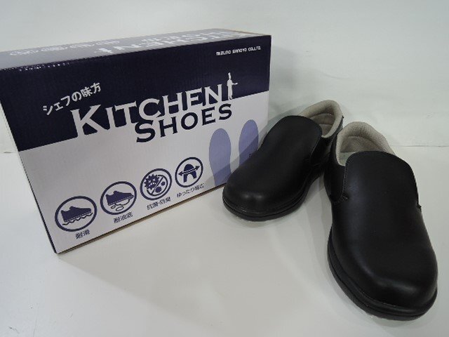 | 水野産業 シェフの味方 キッチンシューズ 黒 25.0cm 199991 耐滑/耐油底/抗菌・防臭/ゆったり幅広 経年保管品/中古美品 | ||||