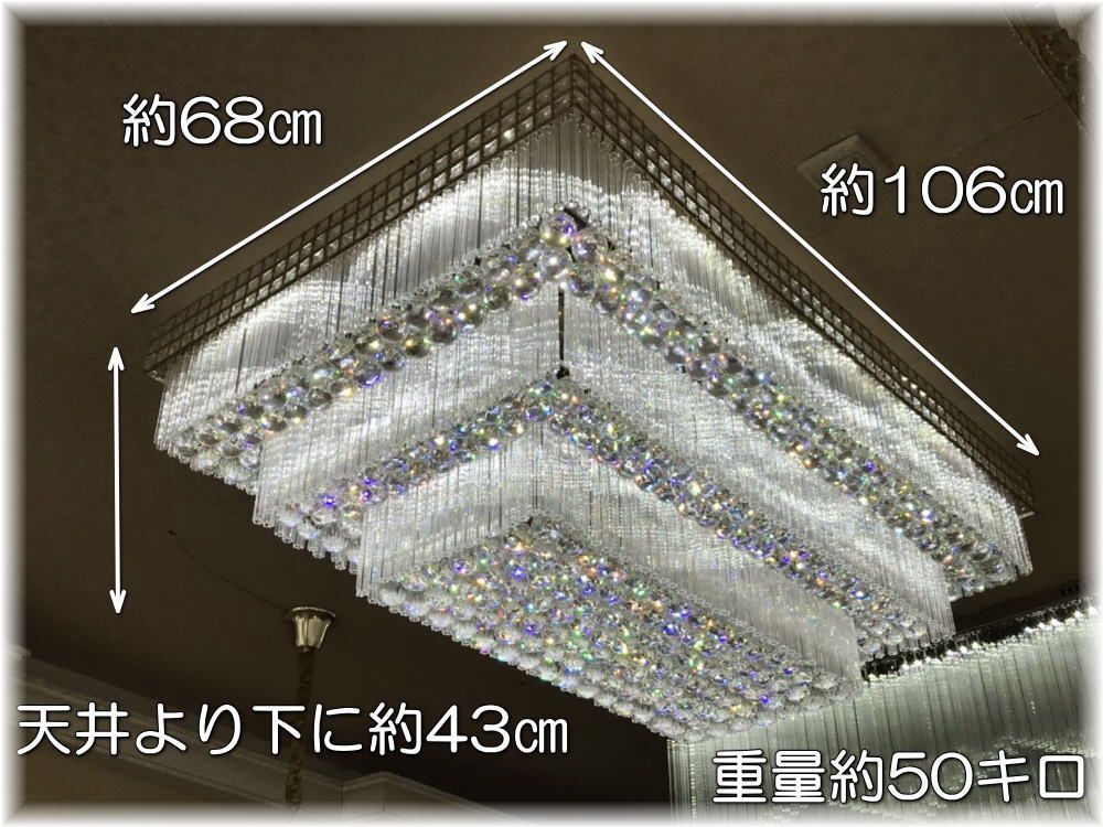 ![]() 【送料無料!】 ☆超豪華LED照明☆新品・粋なデザイン!超大型&超豪華 クリスタルシャンデリア! ☆広角LED電球31灯(¥37200-相当)をお付けいたしまして驚きのプライス! ●消費電力わずか124ワットで最大1240ワットの明るさ! スワロフスキー風上質水晶ならではの最高の輝きを放つ新品クリスタルシャンデリア 添付画像では肉眼で見る本来のクリスタルの輝きをご確認いただけませんが、31灯のLED電球が上質クリスタル水晶を通し光の屈折で光の持つ本来のカラーをかもし出しダイヤモンドのように輝きながらワット数以上の明るさでお部屋全体を照らします ☆リモコンも付属しており全灯を含め7段階の明るさの調整が可能です♪ 付属電球・・・暖色LED31個(口金E17 明るさ40ワット・消費電力4ワット) 白色LEDご希望の場合はご注文後にお申し付け下さい 商品画像は暖色LEDを装着し撮影しております 調光ご希望の場合は調光対応LED(1個¥200-アップ)が必要です 但しリモコンと調光の併用は不可です 店舗等に最適な超大型ゴージャスクリスタルシャンデリアを是非この機会に! サイズ 縦約106センチ 横約68センチ 天井より下に約43cm 重量約50キロです ![]() | |