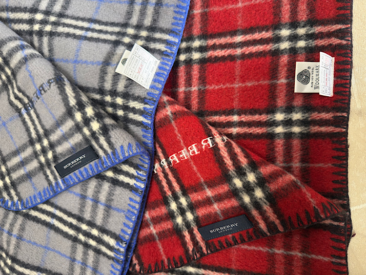 | 【2枚セット】BURBERRY バーバリー/ブランケット ひざ掛け 西川産業 約132×84cm チェック ウール100% wool 保管品■管No7618 | |||