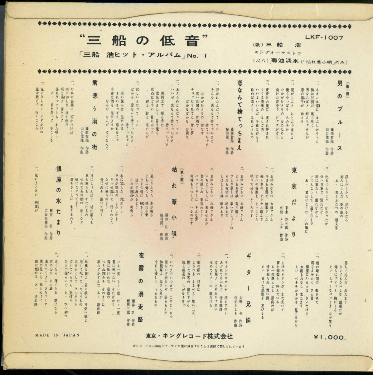 A00377070/10インチ/三船浩「三船の低音 -三船浩ヒット・アルバム No.1-」 [浏览原始页面]