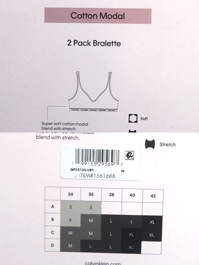 | Calvin Klein コットンモダール ブラレット 2枚セット サイズM | |