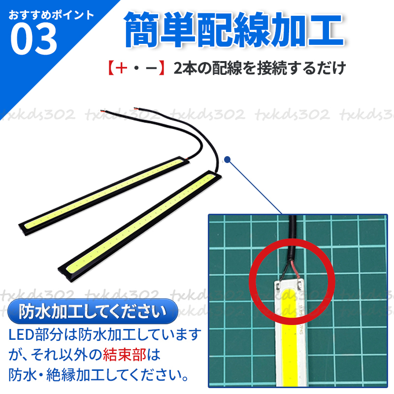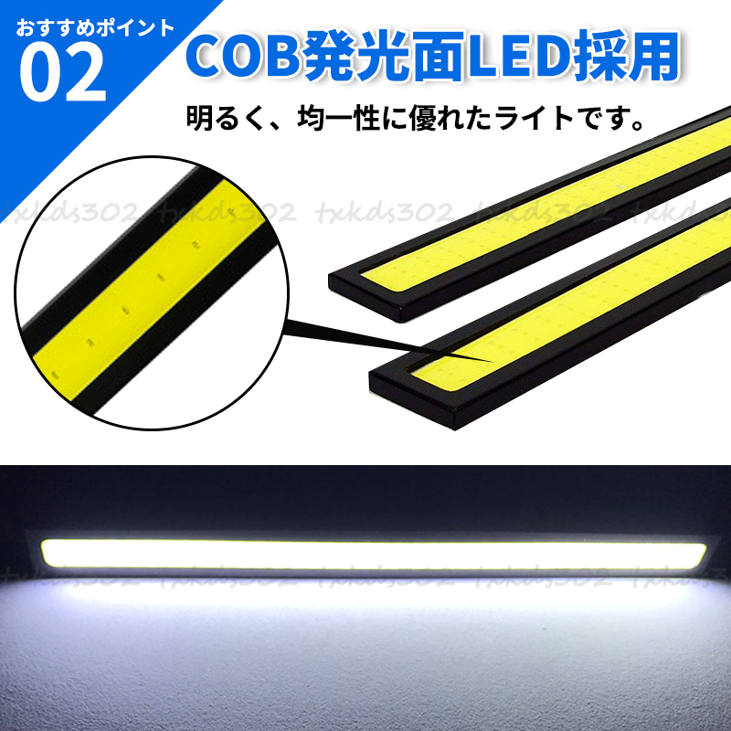 閲覧いただきありがとうございます。 昼間でも自分の車の存在を知らせる為に用いられる『デイライト ホワイト』です。 ●事故防止の安全装備! 日中にライトを点灯させ他の車や歩行者が確認しやすくなります。 昼間の雨や曇り、夕暮れ時などヘッドライトを点灯する前などに効果を発揮します。 ●ドレスアップ! バーライトを装着するとフロントフェイスの重要なアクセントになります。 ドレスアップを目的としたDIYでも人気のパーツとなっています。 発光力の強いCOBは面で発光するタイプのLED。熱も持ちにくい特徴があります。 ●すぐに取付!強力両面テープ付属 取り付けを行いやすい超薄型設計。 強力両面テープで簡単に設置! フロントグリル周辺やルームランプやテールランプなど様々な場所に取付可能。 ◆商品詳細 ・COBデイライト 4本セット ・ホワイト ・汎用タイプ 12V ・170mm×15mm 厚さ4mm ※防水はLED部分のみです。設置後配線部分の防水加工をして下さい。 ※LEDは極性があります。点灯しなかった場合は配線を逆にして結線して下さい。 ※取付けに関するサポートは行っておりません。専門の業者にて取付けすることをおすすめいたします。 ※インポート商品のため塗装げしていることがあります。 【全国送料無料】 ■発送方法 :普通郵便 到着目安 :発送日から約4~6日ポスト投函で完了。 購入後 :2~3日で発送します。 |