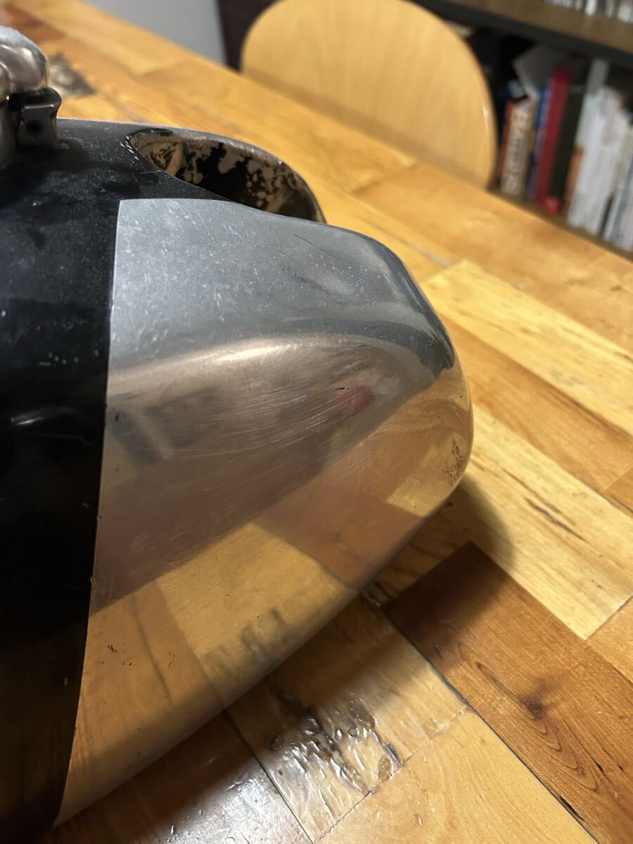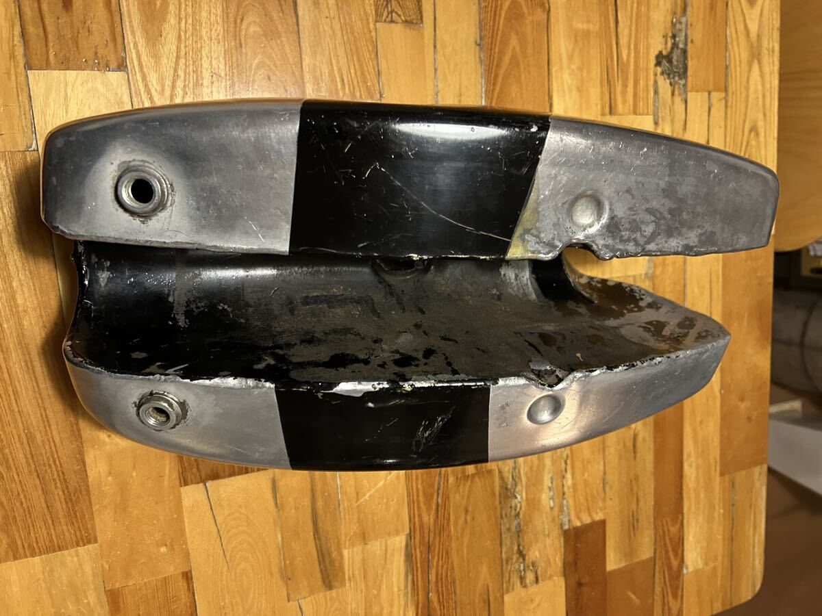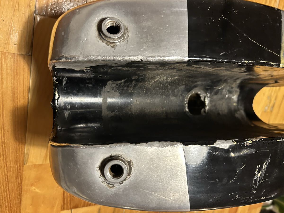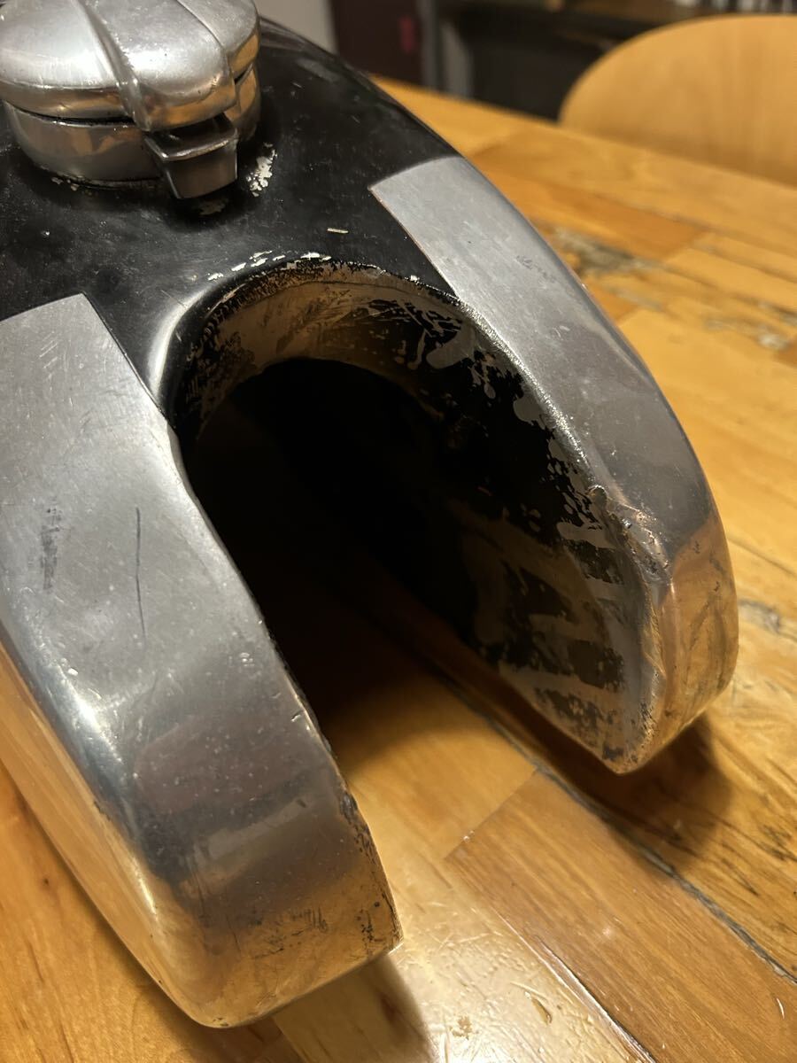 BSA B50MX アルミタンク 純正 以前に海外から取り寄せたBSA B50MXのアルミタンクです。写真にもあるように先端部分に1箇所凹みあります。ノークレームノーリターン厳守