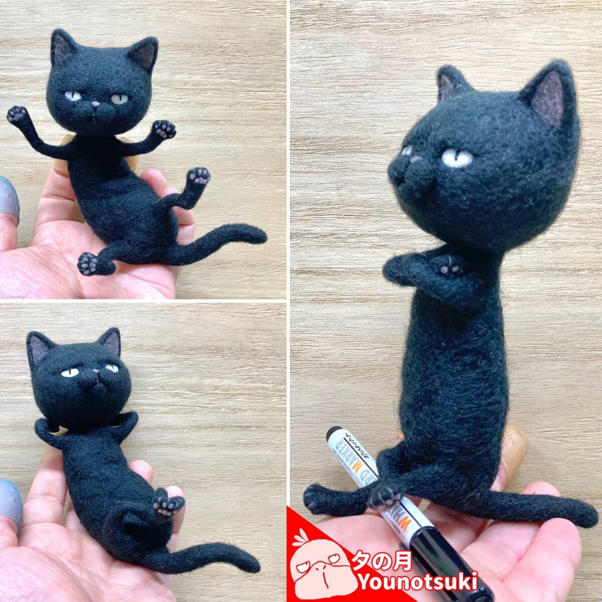 This is a black cat handmade with needle-felted.